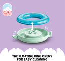 This easy-to-clean floating bath toy for babies and toddlers 1 .5+ years old features an island that doubles as a storage container The floating island splits into 2 separate floating sections, with the bottom half...