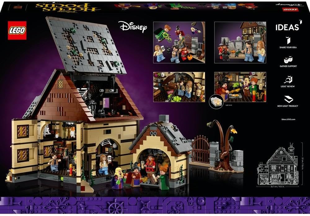 LEGO® Ideas Disney Hocus Pocus building set (21341) – Relive hilarious scenes from classic Halloween movie Disney Hocus Pocus with this detailed buildable model of The Sanderson Sisters’ Cottage 6 LEGO® minifigures – Winifred Sanderson,...