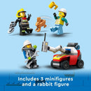 • Includes forest and city fire scenes, 3 LEGO firefighter minifigures, a bunny figure, a radio, fire axe, circular saw, spanner and cup accessories