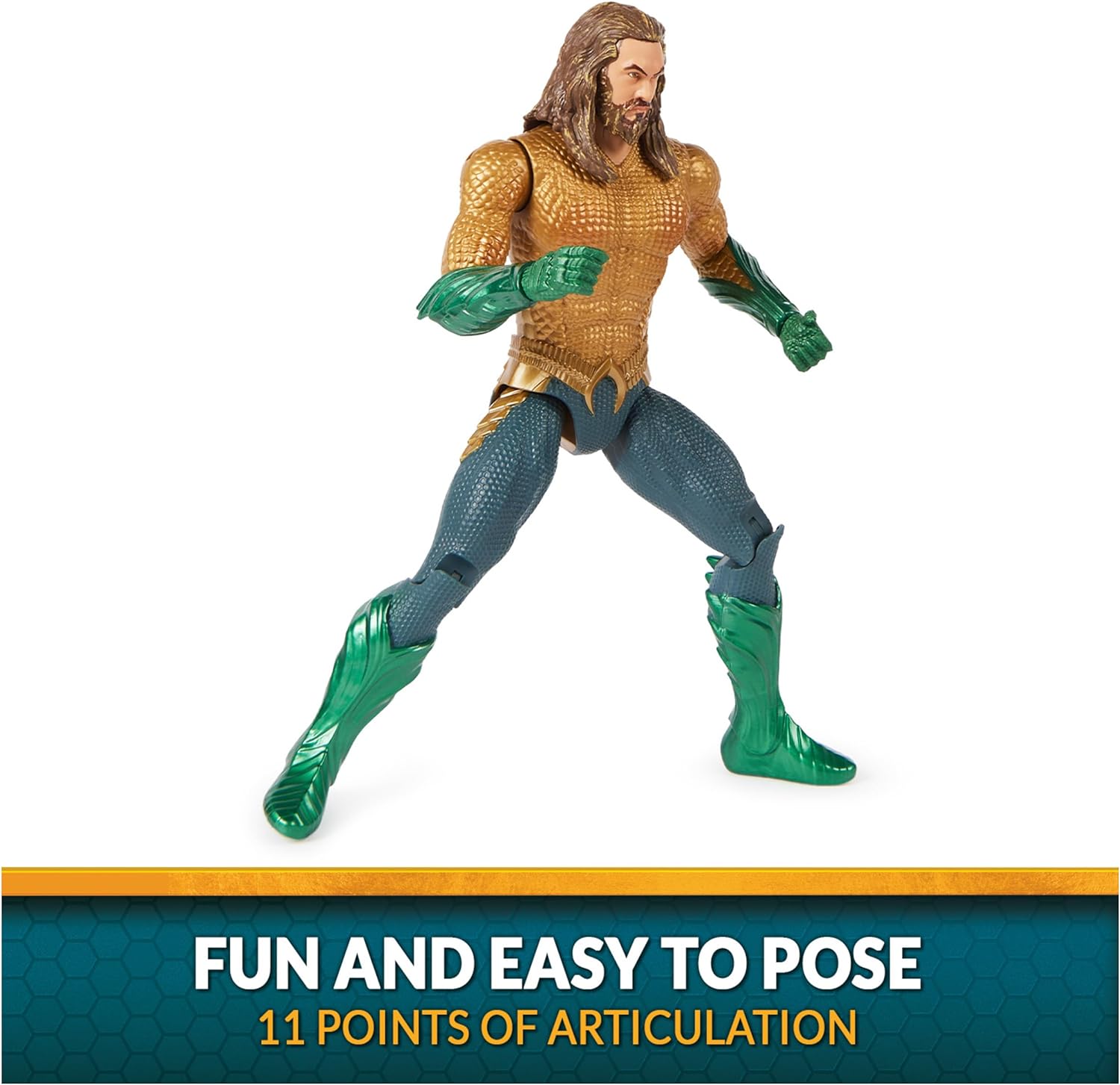 Dive into the world of Aquaman with this 30-cm Aquaman action figure inspired by the film AQUAMAN AND THE LOST KINGDOM. Featuring film-accurate details, a highly detailed sculpt and an iconic costume, this figure brings the Super Hero to life for fans of all ages. With 11 points of articulation, kids and collectors can easily pose the Aquaman figures for epic battles and adventures. Expand your DC Comics collection with Aquaman, Orm, Mera and Black Manta action figures (sold separately) and create an exciting universe of heroes and villains for endless storytelling possibilities. These toys for girls and boys are perfect for kids who love Justice League figurines, the DC multiverse, Super Hero film collectibles, RC cars and more. This Aquaman action figure makes the perfect gift for any Super Hero fan, inspiring imagination and creativity with its dynamic, film-inspired design. Bring home the excitement of Aquaman and the Lost Kingdom with the Aquaman Action Figures.