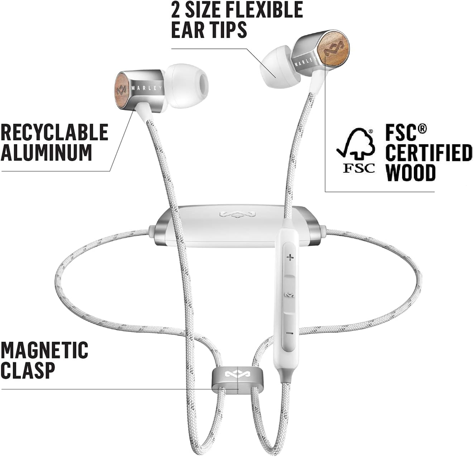 The Uplift 2 Wireless is the newest model of Bluetooth® enabled earphones from the House of Marley. This in-ear design incorporates Bluetooth® connectivity, utilize an easy pairing system and offers over 10 hours of play time on a full battery. The Uplift 2 Wireless is ergonomically designed for a comfortable and natural fit. It is constructed using the sustainable materials of FSC™ Certified Wood, durable recyclable aluminum and medical grade silicone.