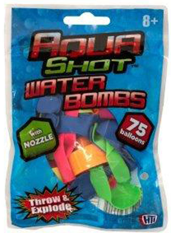 HTI'S Aqua Shot waterbomb pack inlcudes 75 water balloons and a nozzle! Perfect for outdoor fun on a lovely summers day. The nozzle easily attaches to your outdoor hose for easy filling! Suitable for 8...