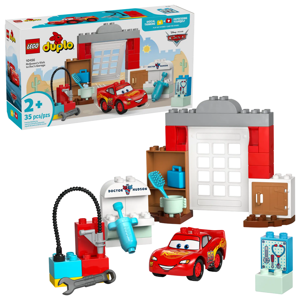 Let preschoolers care for their favorite buildable race car toy with LEGO® DUPLO® │ Disney and Pixar Cars McQueen’s Visit to Doc’s Garage (10456) buildable toddler toy. This building set transports preschoolers to the world of the Disney and PixarCars movies, while helping them develop caring skills through creative play.
