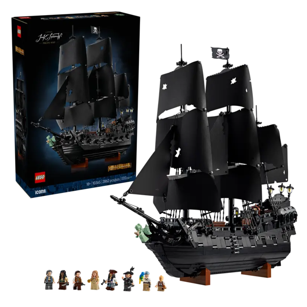 Embark on a creative voyage with the LEGO® Icons Captain Jack Sparrow’s Pirate Ship (10365) model for adults. Craft a detailed LEGO interpretation of the legendary ghost galleon with soaring masts, torn black sails and a crew of 8 iconic film character minifigures, including Jack Sparrow, Will Turner, Gibbs, Cotton, Anamaria, Marty, Elizabeth Swann and Hector Barbossa.