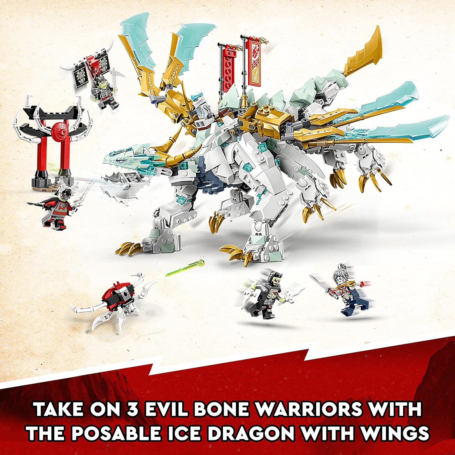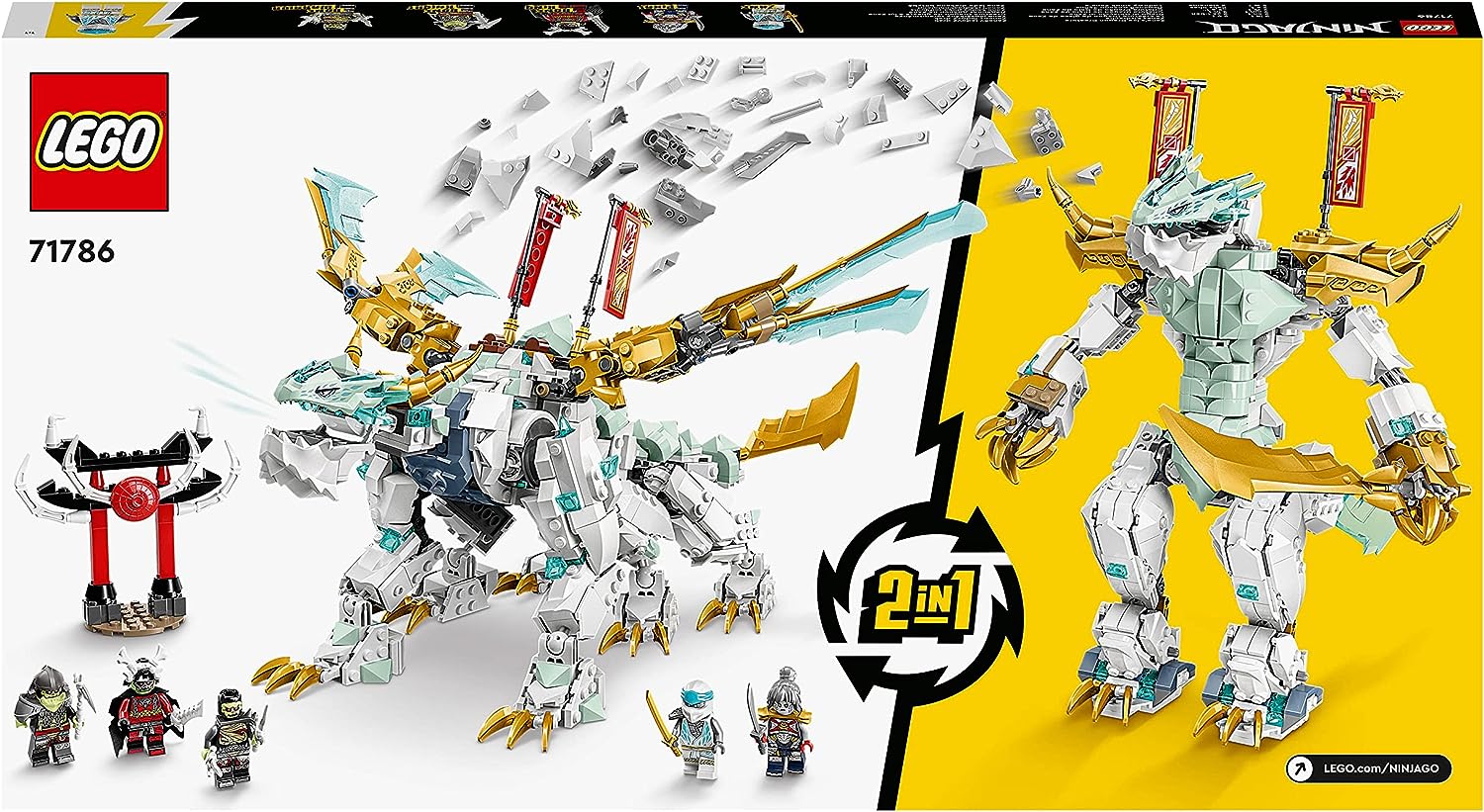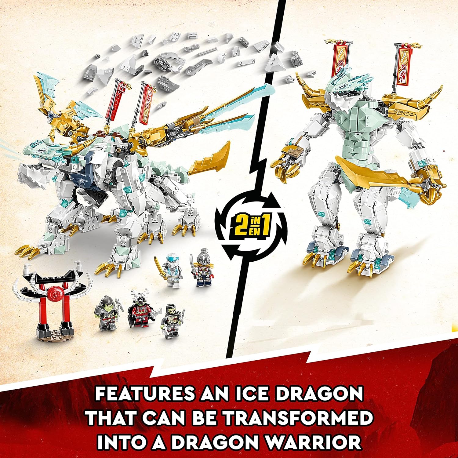 This 2in1 LEGO NINJAGO building toy set features a posable ice dragon toy that can be rebuilt into an awesome dragon warrior action figure The ice dragon toy figure has 6 legs, sharp ice claws,...