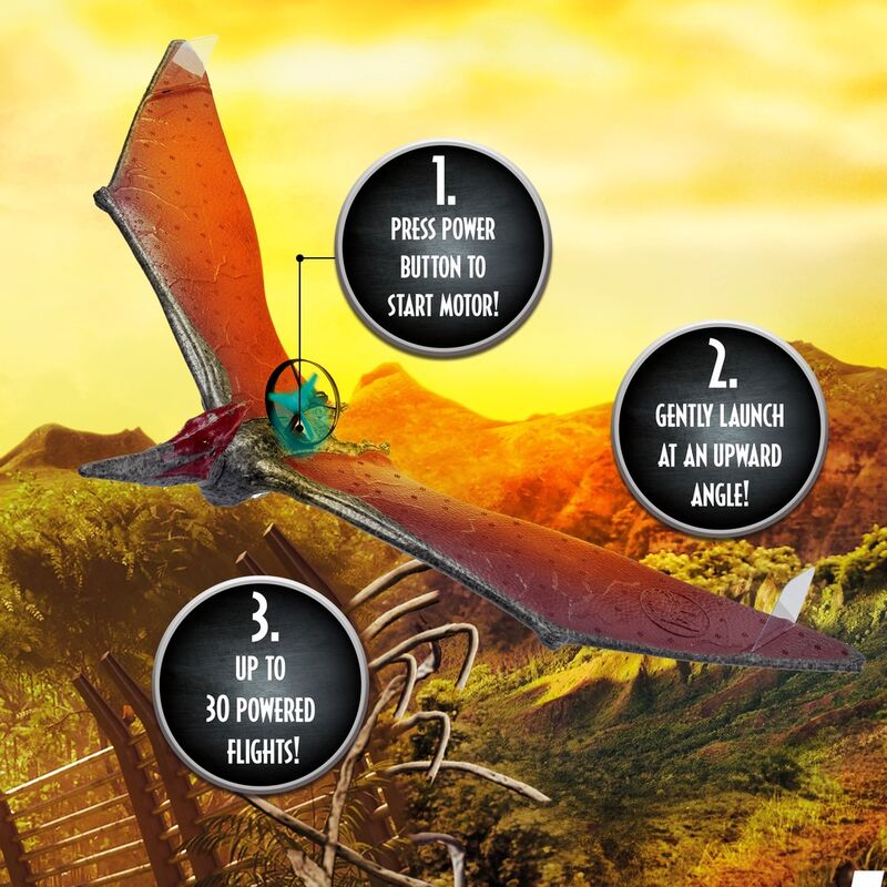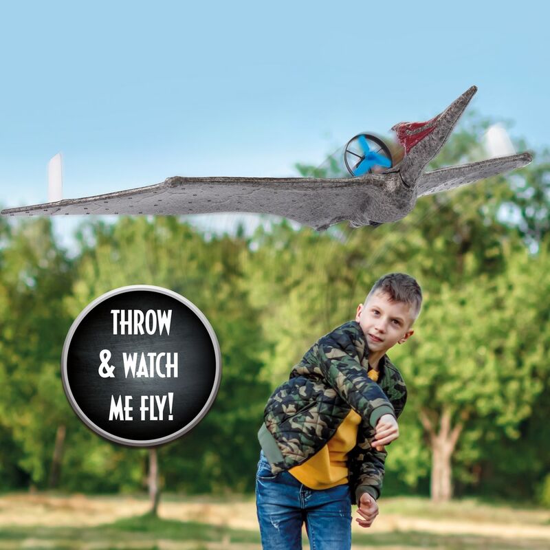 Wow Stuff continues to live up to its name by creating original and spectacular pieces. With this flying Pteranodon they have surpassed the game of flying figures. Based on the pteranodons that appear in the 2015 movie "Jurassic World" and that create total chaos among park visitors, this dinosaur with a propeller and motor will be able to make up to 30 flights with each charge of its battery. Includes instructions and a USB cable to charge it. It has an extension of 60 cm from tip to tip of the wing. Have a great time launching (gently) this impressive dinosaur that is the closest thing to having a real pteranodon in your garden or park, without the inconvenience of it measuring three meters and eating you, of course.