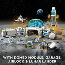 This LEGO space set features a domed toy Lunar Research Base, a LEGO lunar lander, skycrane drone toy, VIPER rover and a moon buggy The LEGO NASA - inspired toy moon base set is packed...