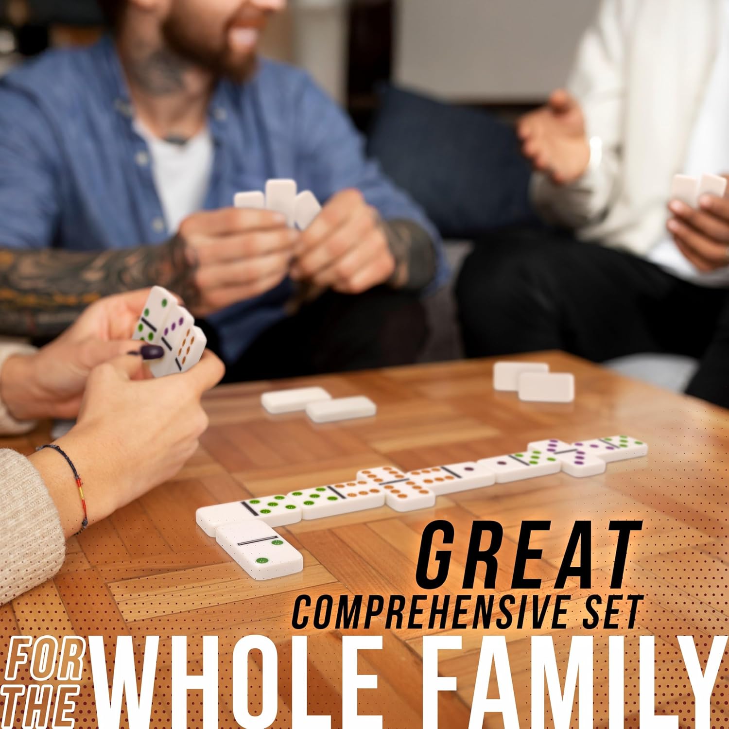 A great family favourite, Double 9 Dominoes! Offers Easy and engaging games night fun, complete with instructions on several games to play Play family favourite, Chickenfoot or Muggings, 42, Moon and Castle Rock! High-quality dominoes...