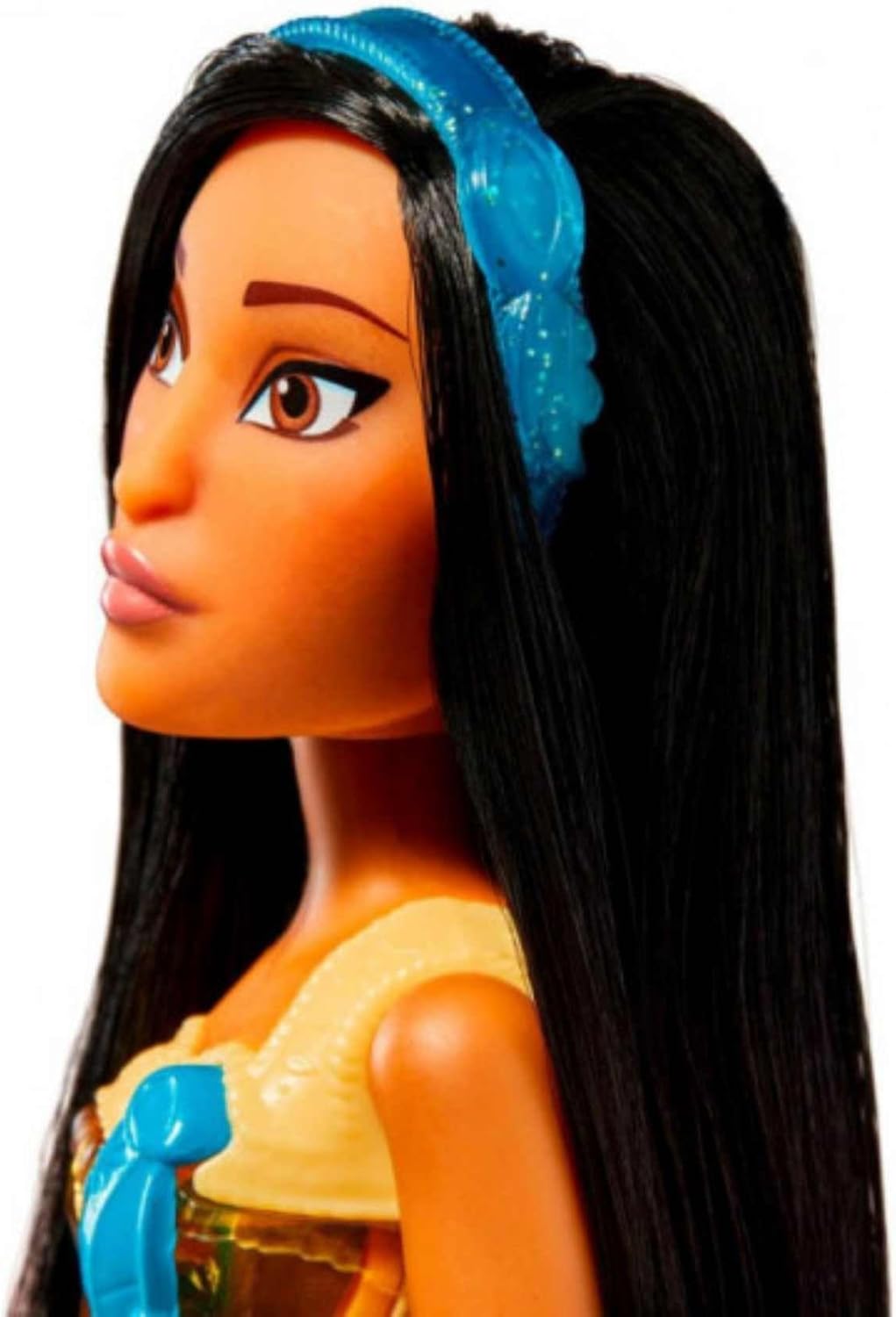 FASHION DOLL SKIRT AND ACCESSORIES: The Royal Shimmer Pocahontas doll includes skirt, boots, and tiara in shades of her signature colors LONG BLACK HAIR: The Disney Princess fashion doll has long black hair, inspired by...