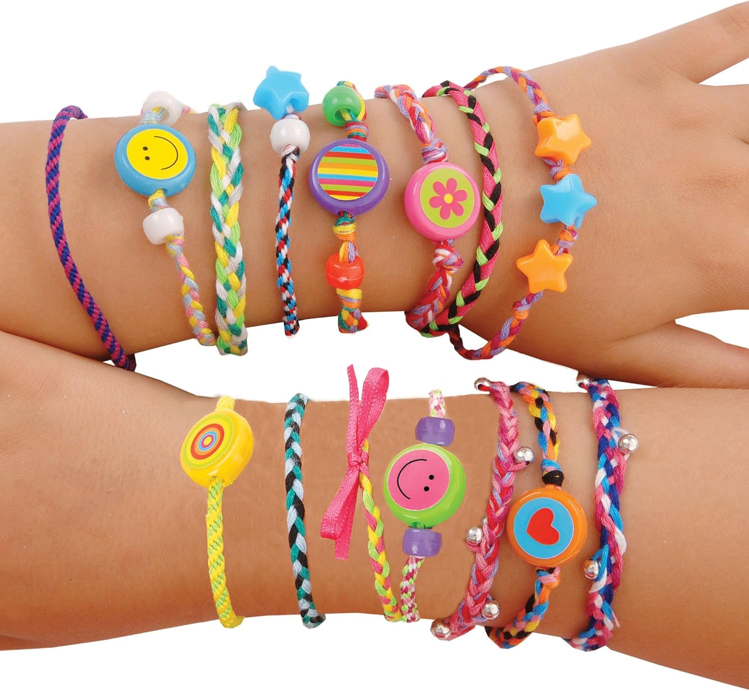 • BRACELET MAKING KIT: Create cool bracelets with colourful threads, beads and ribbon, Use the foam braiding wheel to make cord bracelets to share with friends, Plait and weave using the cotton threads