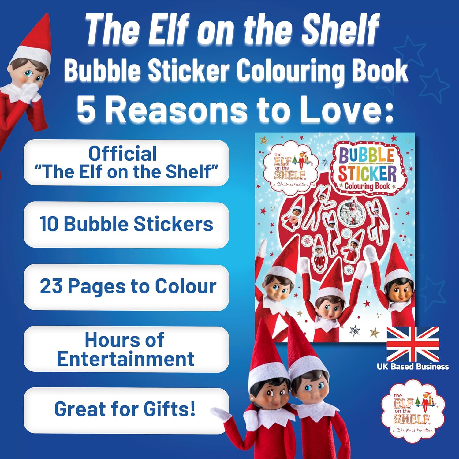 The Elf on the Shelf Bubble Sticker Colouring Book -the ultimate Christmas activity book! ELF ON THE SHELF COLOURING BOOK includes: 24 pages of fun pictures to colour and features all favourite Scout Elf characters...