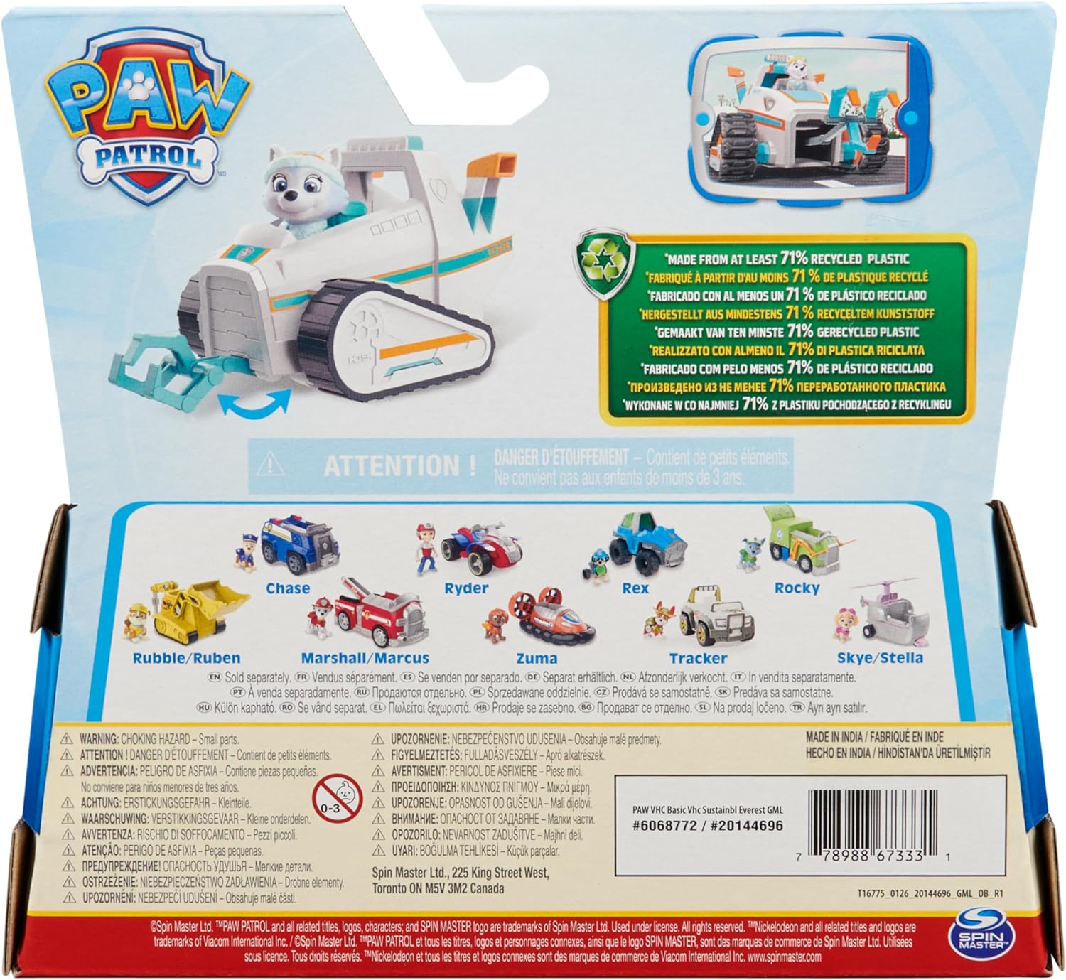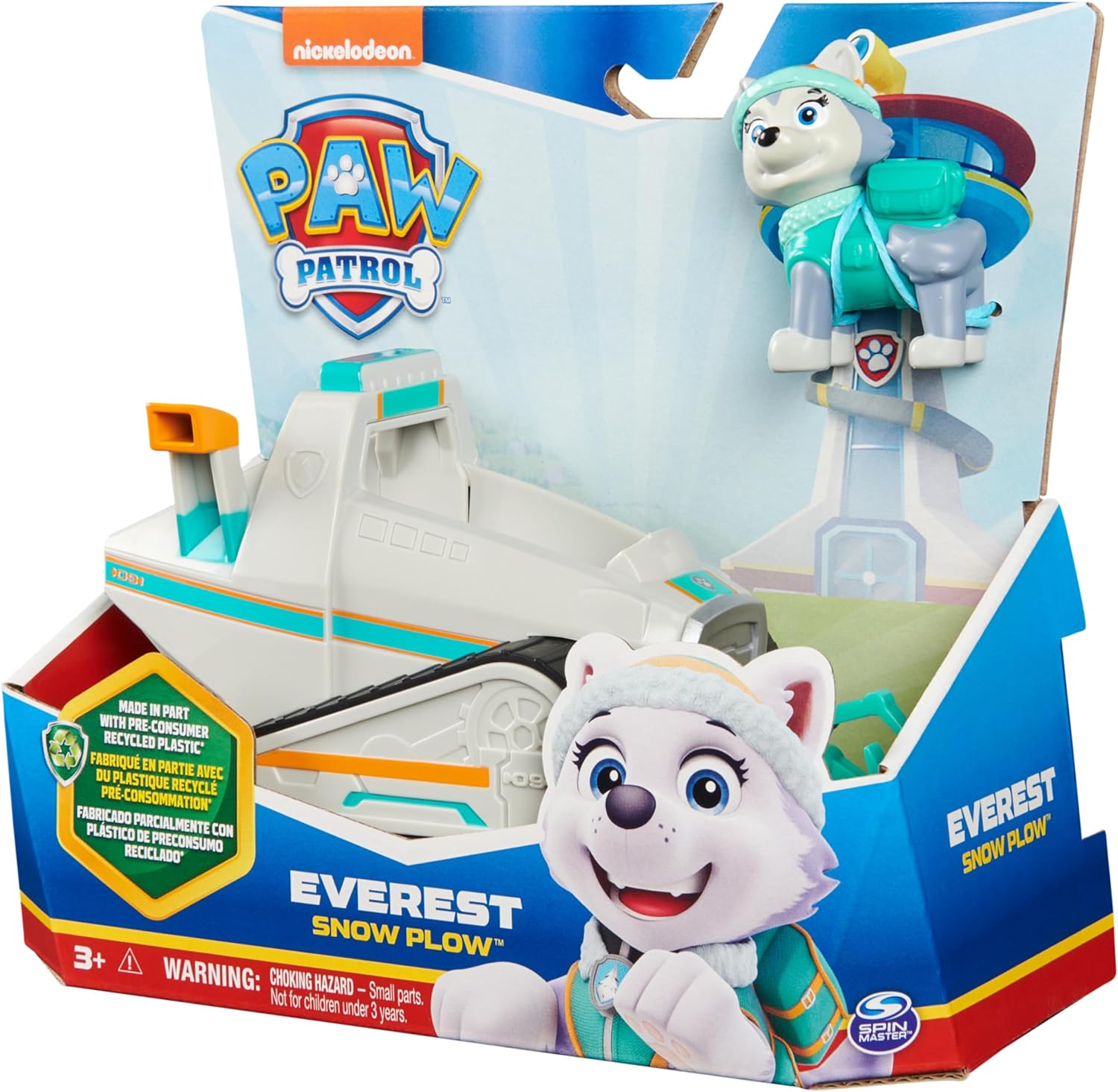 SNOW PLOW TOY CAR: Everest is ready to go in ice or snow! With authentic detailing, working wheels and a moveable claw, Everest’s Snow Plow is ready to take on exciting rescue missions!,COLLECTIBLE EVEREST FIGURE: This Snow Plow vehicle includes a collectible Everest toy figure. Wearing her signature uniform and hat, Everest is ready to save the day!,SUSTAINABLY MINDED TOY: PAW Patrol Everest and her toy car are made from at least 71% recycled plastic. Kids can explore their imagination to create exciting missions with their favorite pup!,COLLECT THEM ALL: Expand your collection of PAW Patrol toys for girls and boys with toy trucks, action figures, diecast cars, dinosaur toys, stuffed animals, board games, jigsaw puzzles and more!,EDUCATIONAL & LEARNING TOYS: PAW Patrol preschool toys and toddler toys are great gifts for kids who like pretend play with toy cars, toy figures & playsets as an alternative to dolls or a train set.