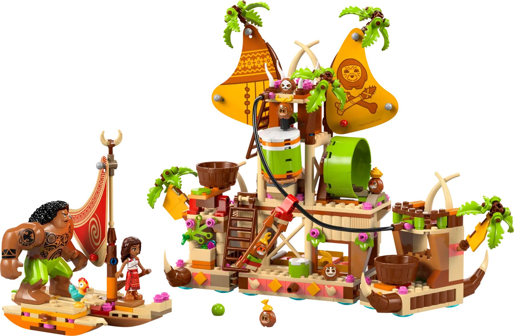 • Moana boat building set – Includes a barge boat with 3sections and a zipline, a smaller, 2-hulled canoe with storage space, Heihei the chicken, Moana, Maui, Kotu and 5 more LEGO® ǀ Disney characters