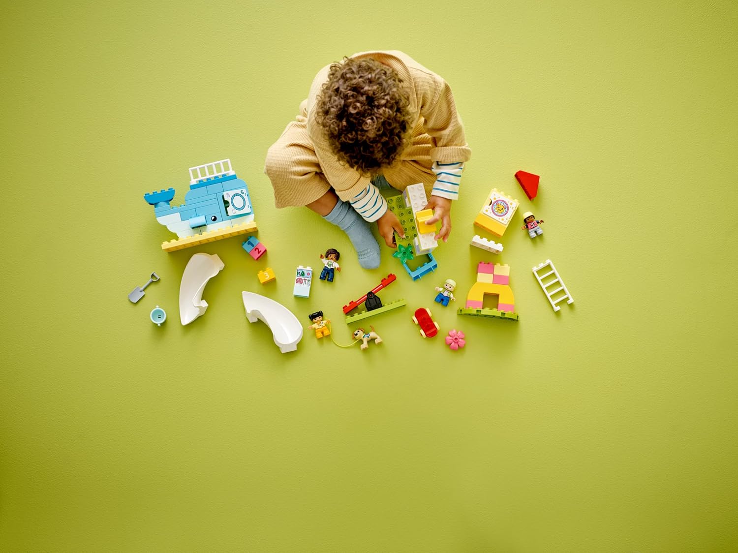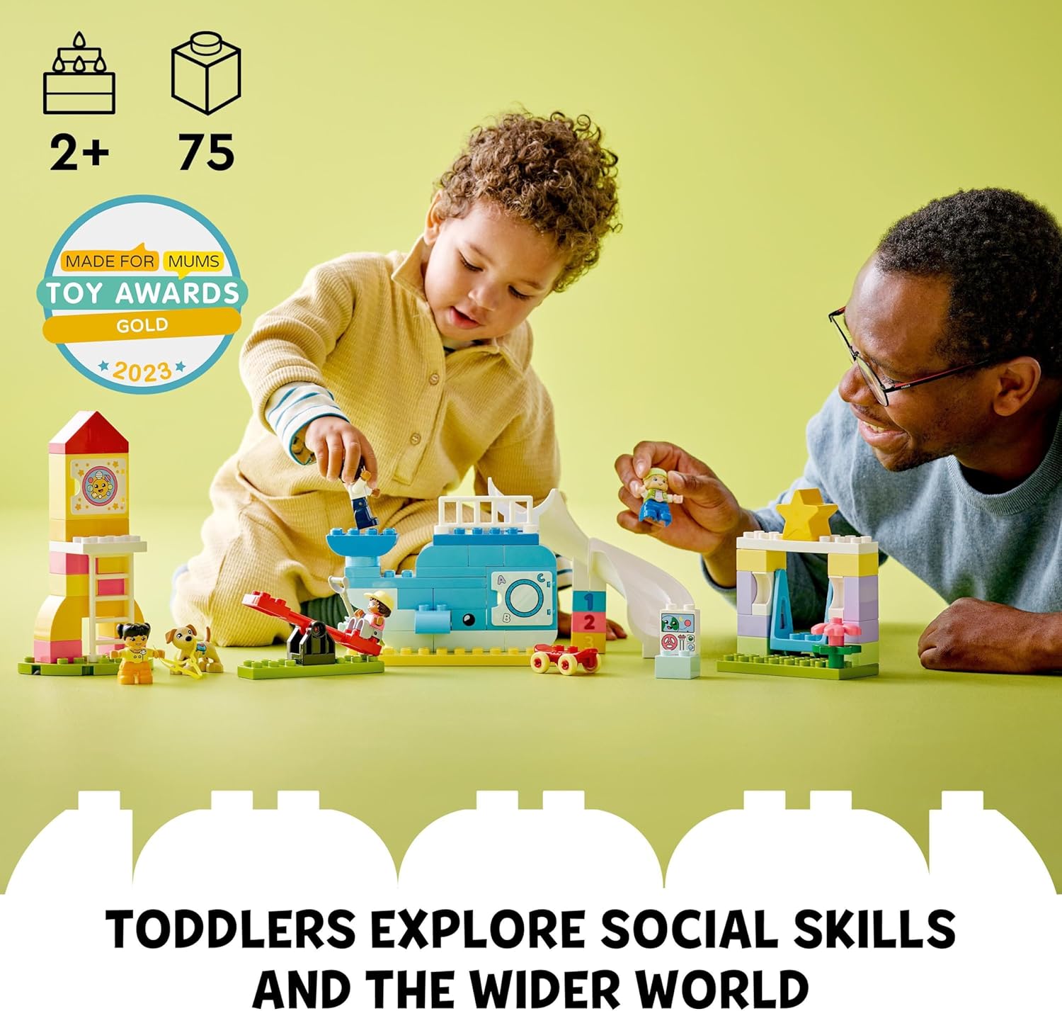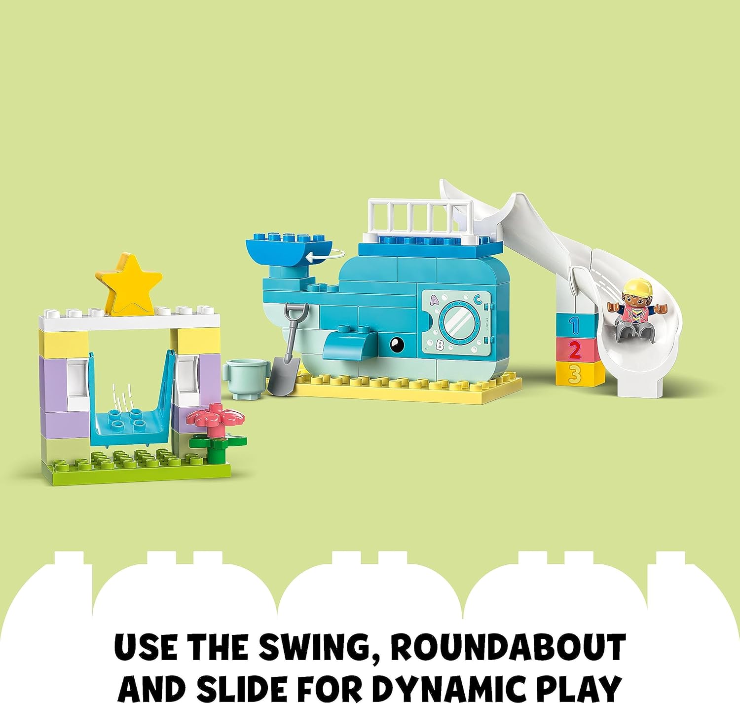 Toddlers learn about letters, numbers and colours with this LEGO DUPLO Dream Playground building toy set, featuring loads of playground activities This building toy for 2+ year olds features a merry-go-round, swing, rocket climbing frame,...