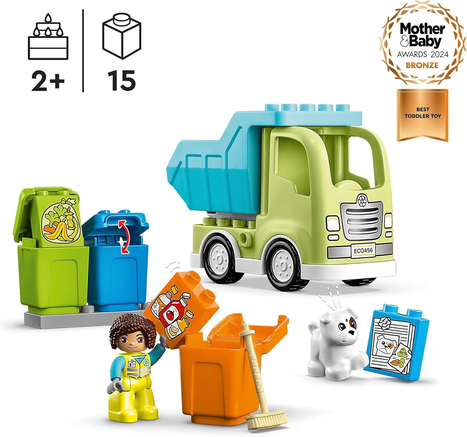Garbage Truck As kids organize the recycling fitting the 3 bags into 3 matching waste bins and garbage truck toy, they develop eco-friendly habits for life This preschool learning toy includes 2 LEGO DUPLO figures...