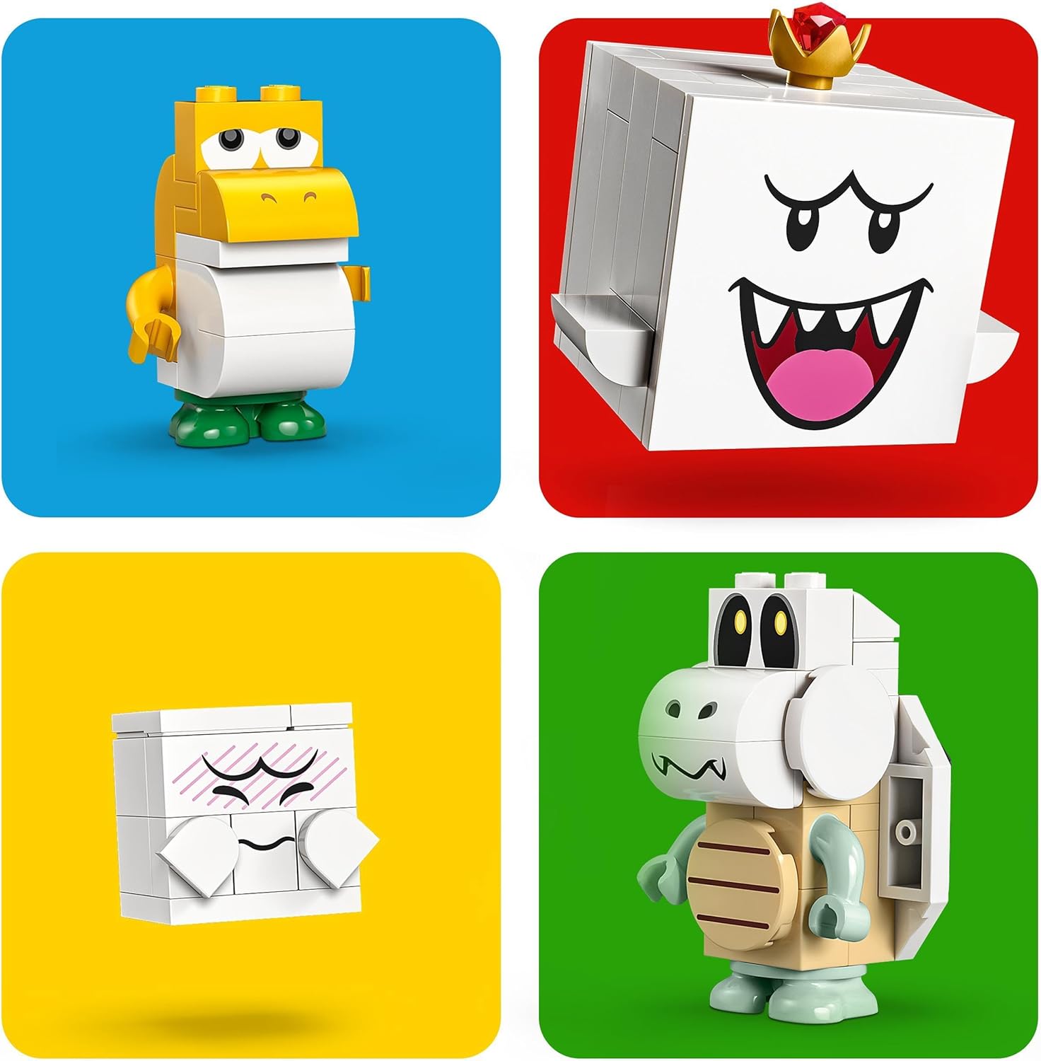 • 4 LEGO Super Mario toy figures, including King Boo and a Yellow Baby Yoshi