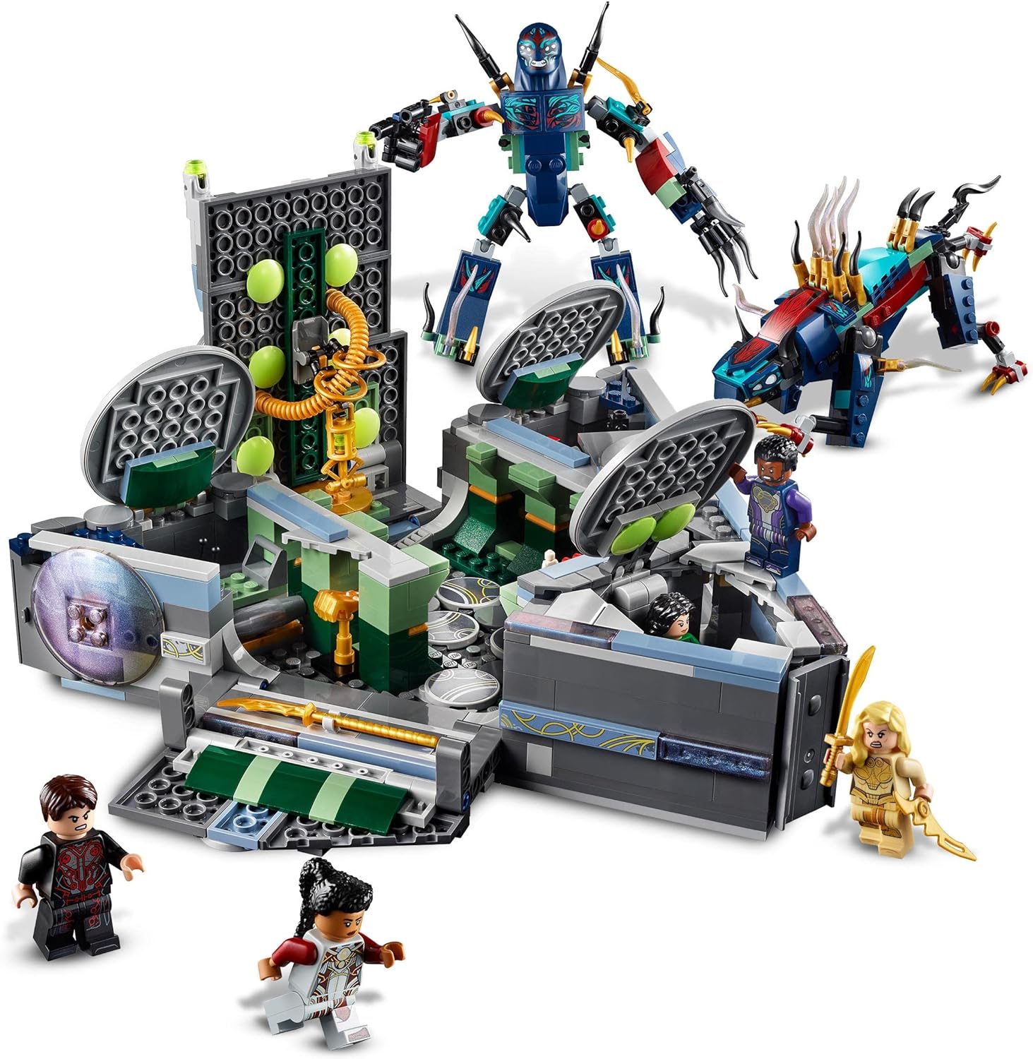 The LEGO Marvel Rise of the Domo building toy features the Eternals’ spaceship with 3 sides that lift open to give access to explore and play This space toy for kids features a cockpit, armoury...