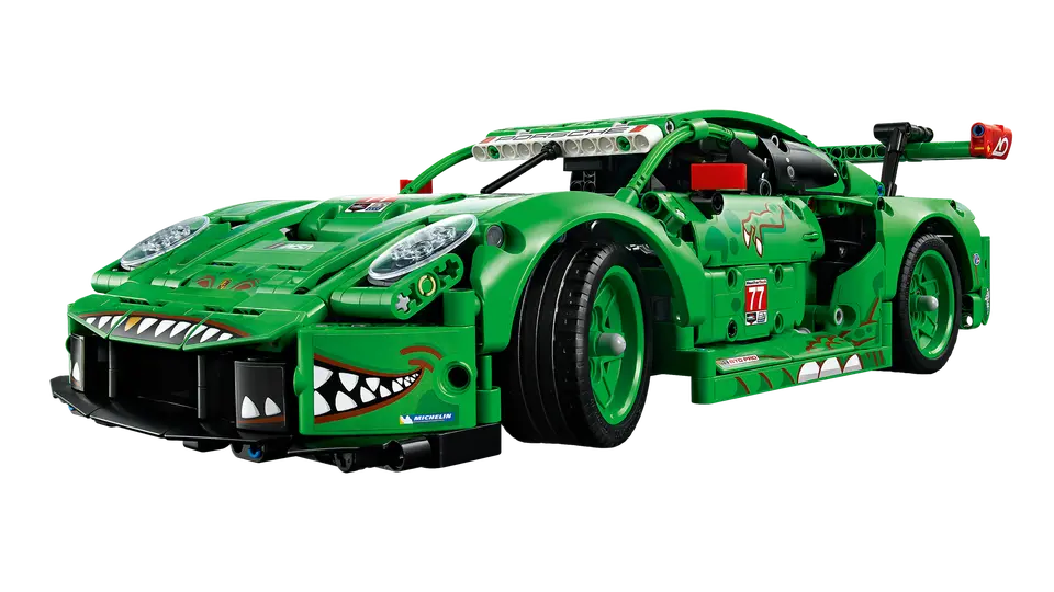 Fuel epic play with this dinosaur-themed endurance race car for kids ages 11 years and up. Packed with cool details, the LEGO® Technic™ Porsche 911 GT3 R REXY AO Racing Car (42224) is made for boys and girls who love fast-action play. Kids can take control using the steering knob on top, then check out the working suspension on all 4 wheels, the rear wheel drive with differential, 6-cylinder boxer engine with correct firing order, opening doors and trunk and synchronized air jacks. And with its fierce T. rex-themed livery, this model looks just as awesome on display as it does on the racetrack. This set makes a fun gift for dinosaur fans and car enthusiasts. LEGO Technic sets feature realistic movements and mechanisms that introduce young LEGO builders to the universe of engineering in an approachable way. Kids can build with confidence using the LEGO Builder app – zoom, rotate in 3D and track progress with easy-to-follow digital instructions. Set contains 1,313 pieces.
