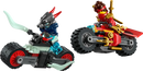 The ninja vehicle set includes 2 NINJAGO minifigures to ride the bikes: Kai armed with a translucent reveal blade accessory and 2 golden katana sword accessories, and a Spectral Dragonian Scout with a sword accessory, so kids can enjoy great imaginative play on their own or with their friends as they stage good vs. evil battles.