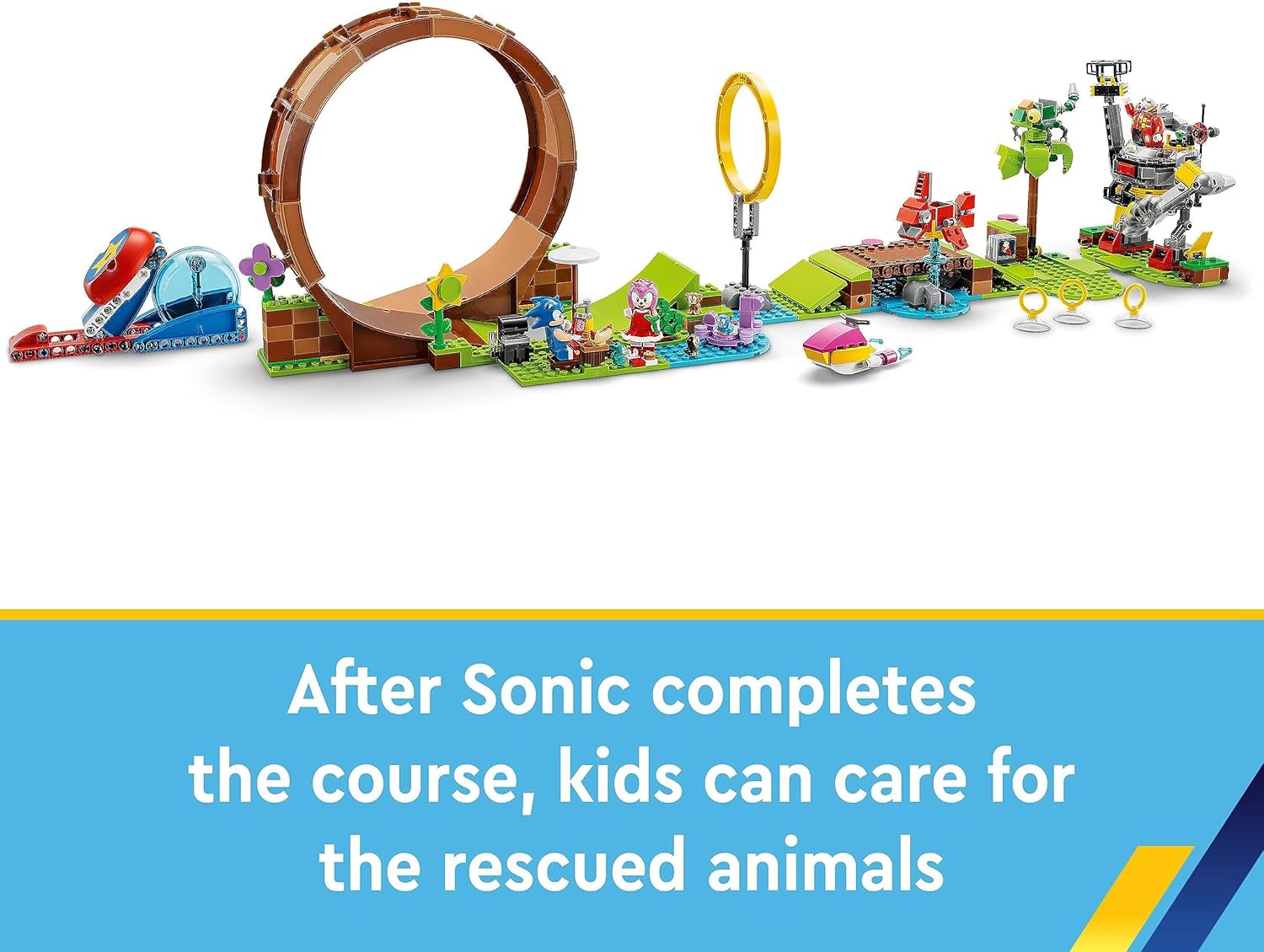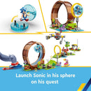 The LEGO Sonic the Hedgehog: Sonic's Green Hill Zone Loop Challenge toy playset for kids aged 8+ features a buildable game and 9 iconic characters Kids can build the course, which includes ramps and obstacles,...