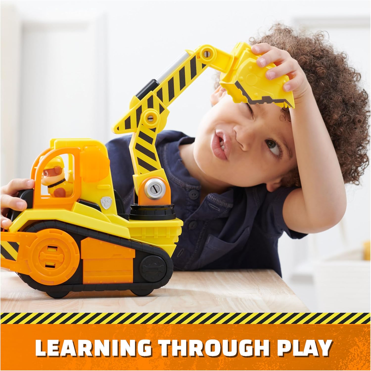 • KIDS’ CONSTRUCTION TOYS: Rubble’s toy bulldozer construction truck features a moving scoop and a working excavator toy that pivots, so kids can dig, scoop and load while creating building adventures