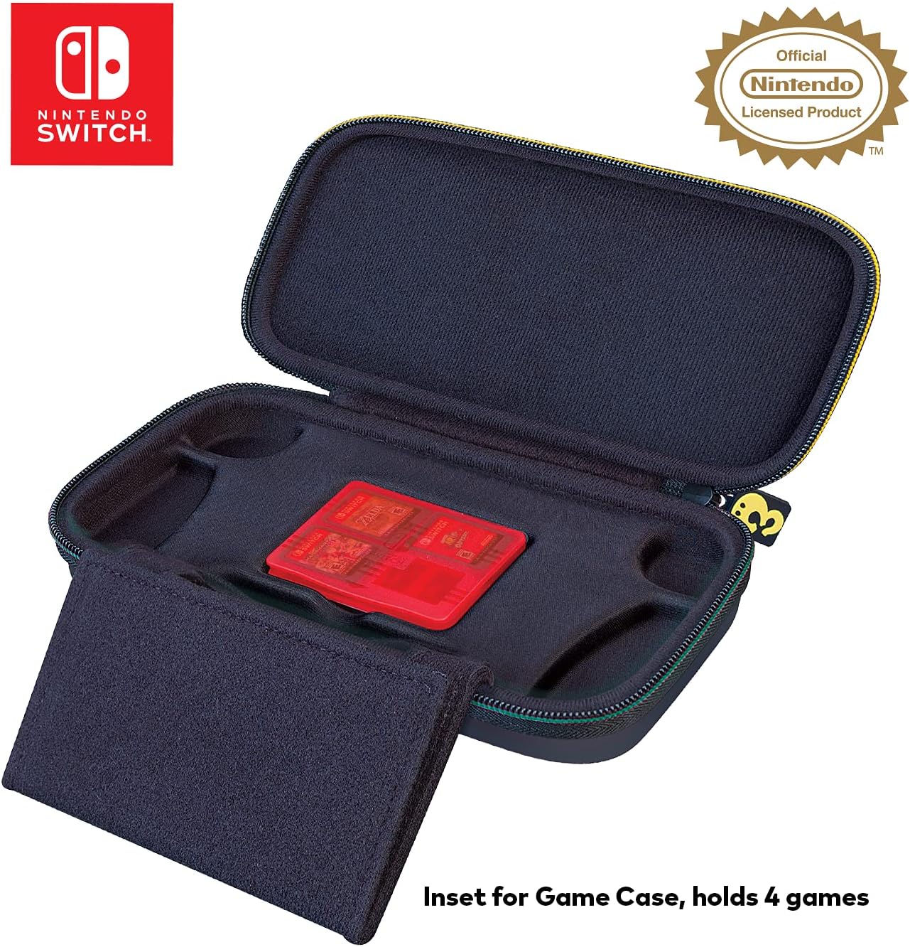 Durable hard shell case with an artistic printed vinyl covering featuring a collectable Luigi mansion 3 image Patented adjustable viewing Stand allows for play and view on the go Provides maximum protection for the Switch...