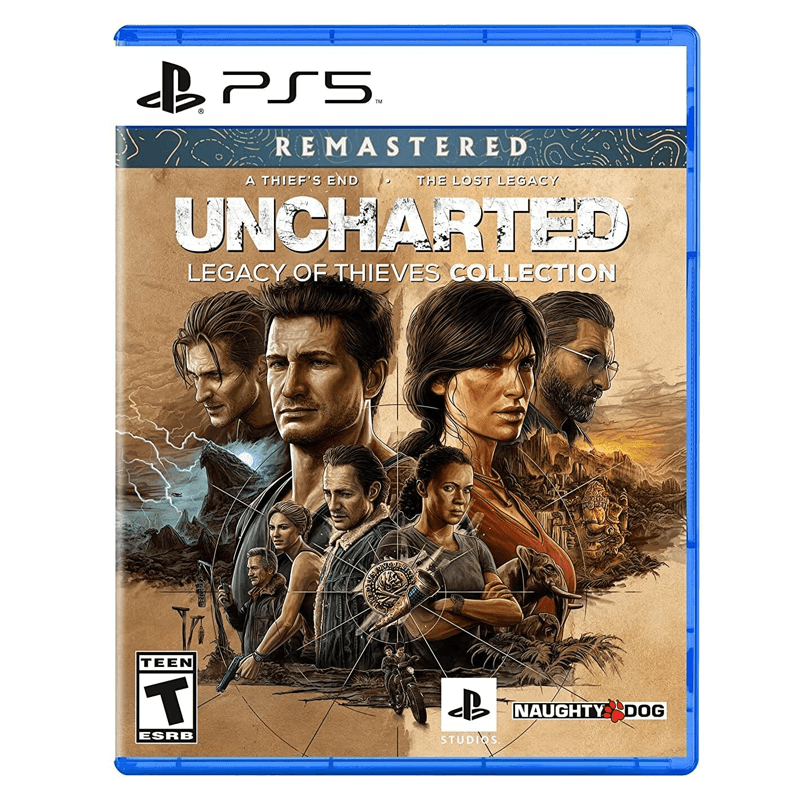 Seek your fortune and leave your mark on the map in the UNCHARTED: Legacy of Thieves Collection. Uncover the thrilling cinematic storytelling and the largest blockbuster action set pieces in the UNCHARTED franchise, packed with all the wit, cunning, and over the top moments of the beloved thieves - Nathan Drake and Chloe Frazer. In an experience delivered by award winning developer Naughty Dog, the UNCHARTED: Legacy of Thieves Collection includes the two critically-acclaimed, globe-trotting single player adventures from UNCHARTED 4: A Thief's End and UNCHARTED: The Lost Legacy. Each story is filled with laughs, drama, high octane combat, and a sense of wonder - remastered to be even more immersive. Live the adventure like never before with the features and incredible speed of the PlayStation 5 console. The award-winning fidelity and detail from the developers at Naughty Dog is made even more stunning with improved visuals and framerate. Feel the blockbuster action of the UNCHARTED franchise with the DualSense wireless controller's haptic feedback and adaptive triggers.
