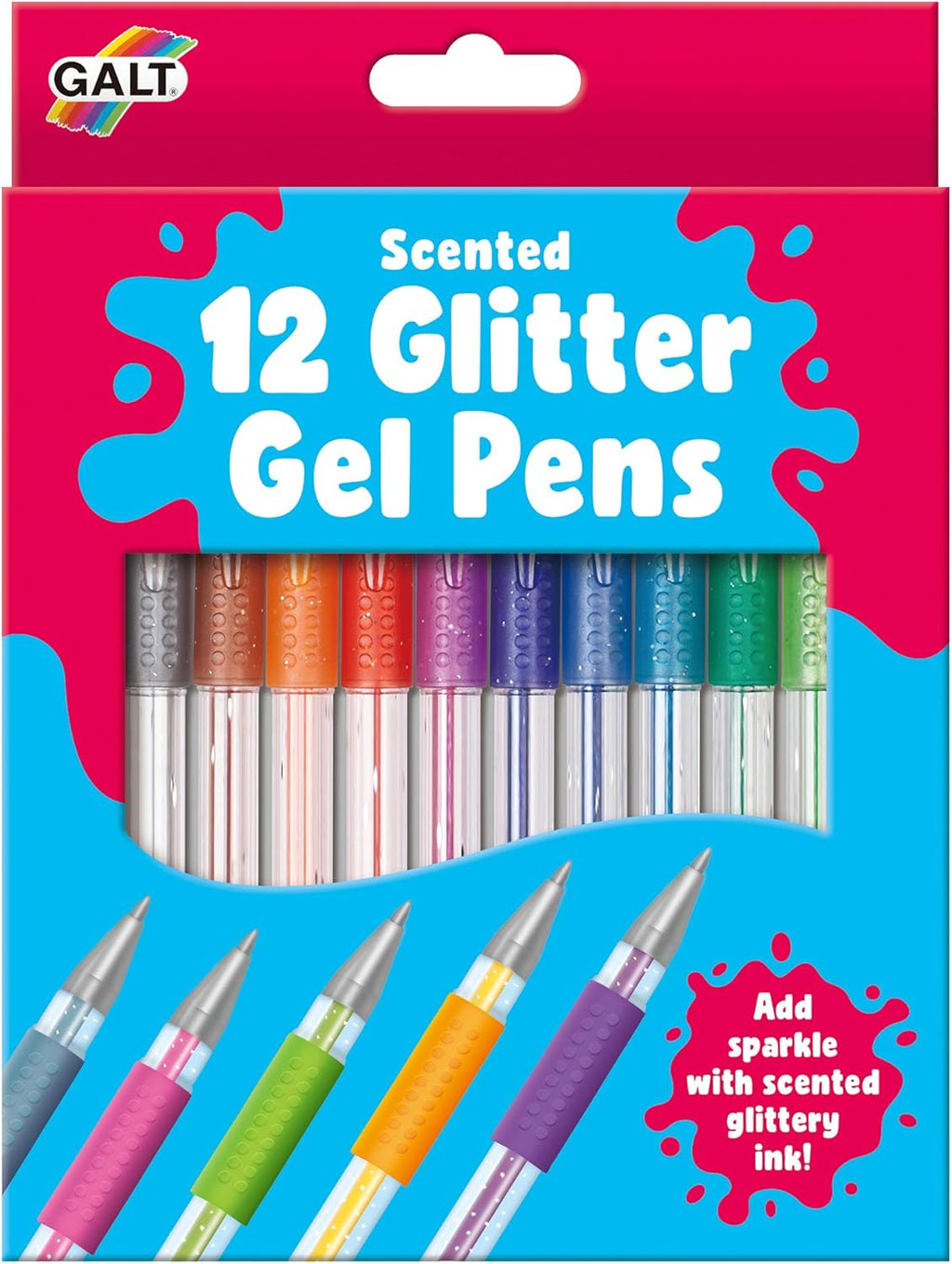 12 smooth-flowing gel pens with colourful glittery ink Add sparkle to writing and artwork Suitable for age 6 years and up Scented Gel Pens Age: from 6 years