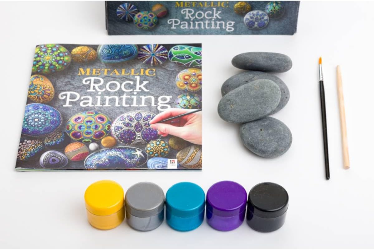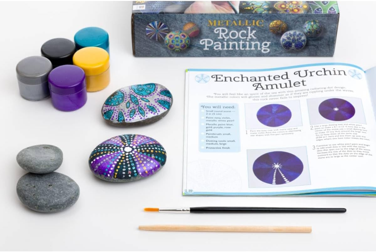 Perfect for those who enjoy creative, meditative pastimes, Metallic Rock Painting teaches you how to create eye-catching works of art that stylishly shine and glimmer. Rock painting artist Katie Cameron guides you through the process of making 8 luminous metallic designs, providing tips and hints along the way so you can dot, paint, and create rock artwork like a pro.