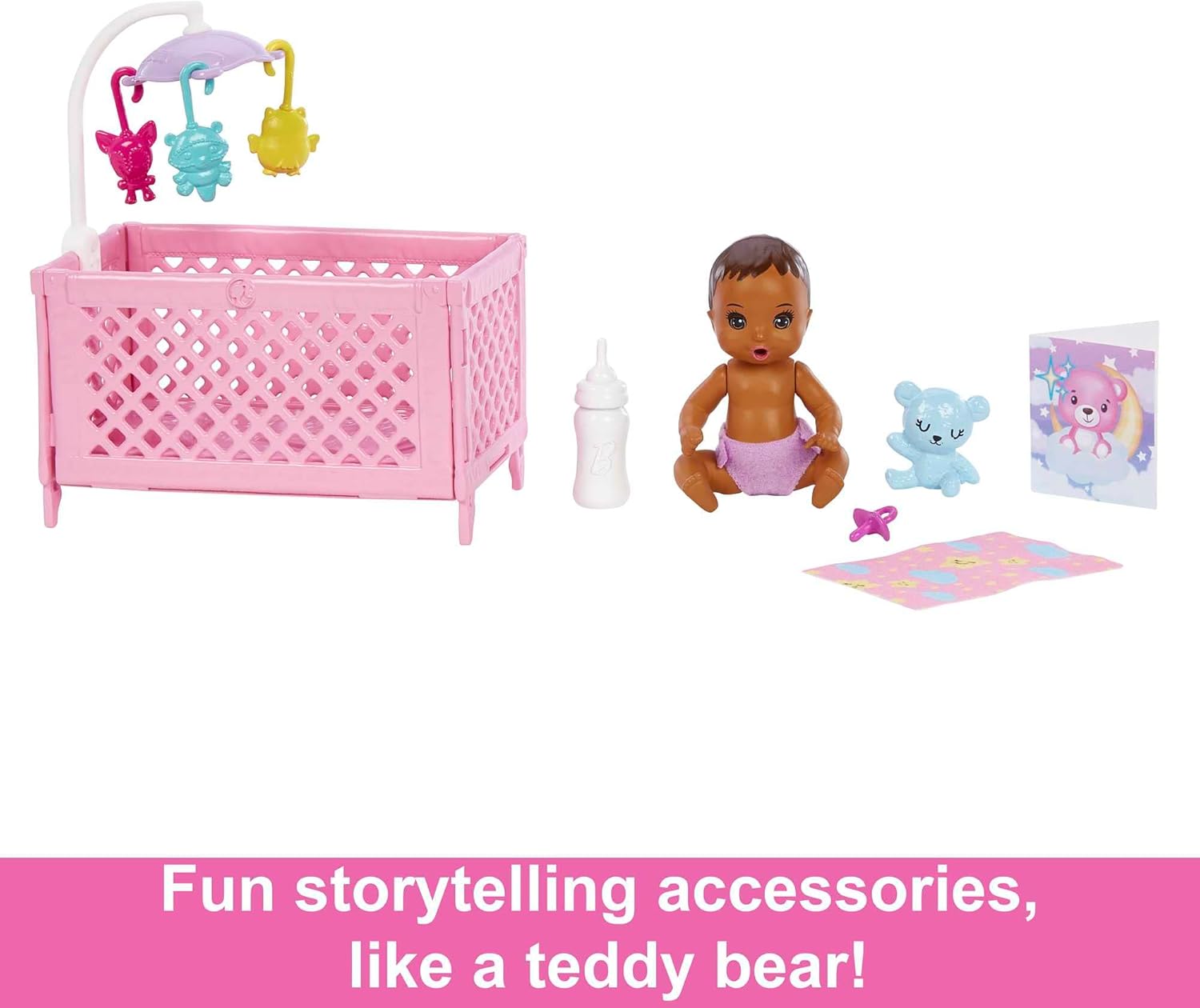 Play out bedtime babysitting stories with the Barbie Skipper Babysitters Inc. doll and accessories playset inspired by the movie Barbie Skipper & The Big Babysitting Adventure This dreamy set features Skipper friend doll, a baby...