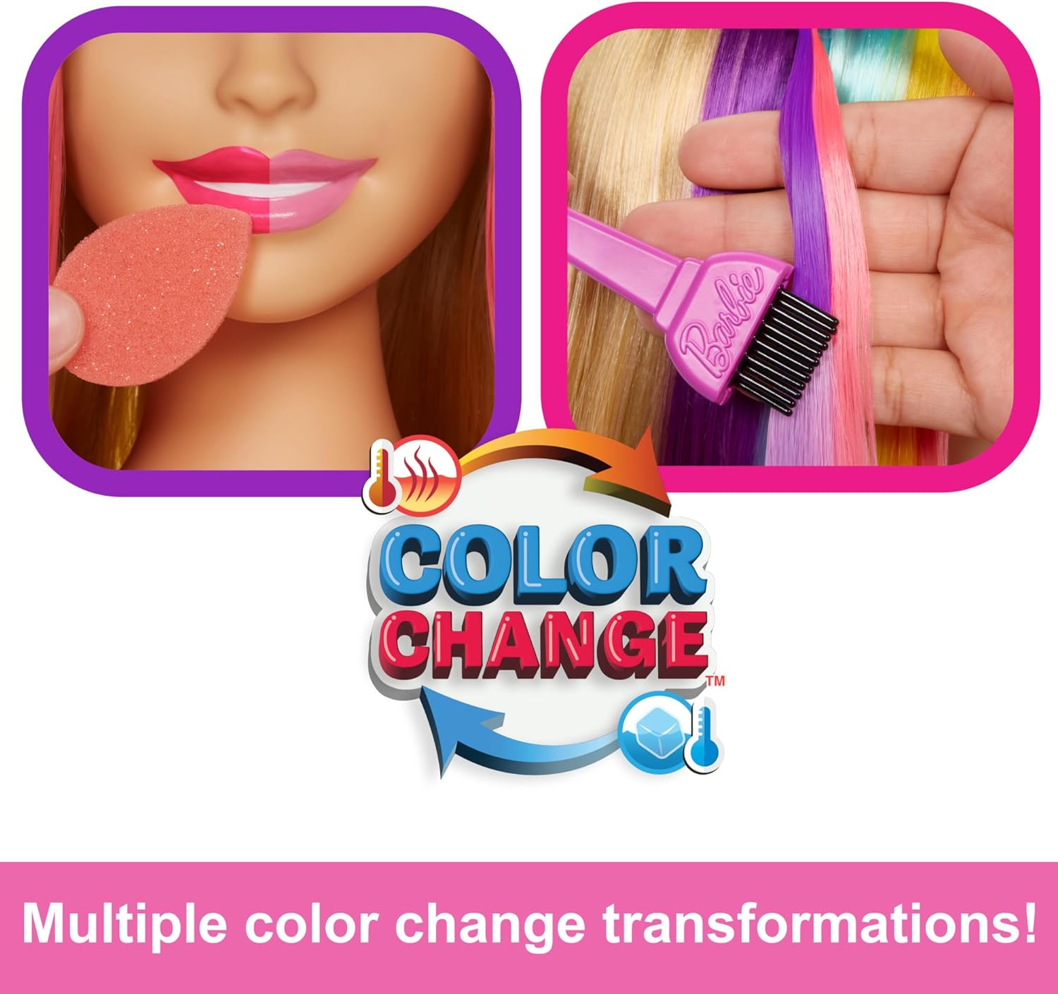 • Barbie Deluxe Styling Heads transform any room into a beauty salon! With 22 accessories -- including ten color-change features -- kids can create countless hairstyles.