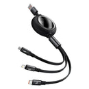 Plug type: USB to USB-C + Lightning + microUSB Length: 1.2 m (regulation: 35, 60, 80, 110, 120 cm) Power: up to 66W Material: PC + TPE Functions: charging, data transmission for USB-C