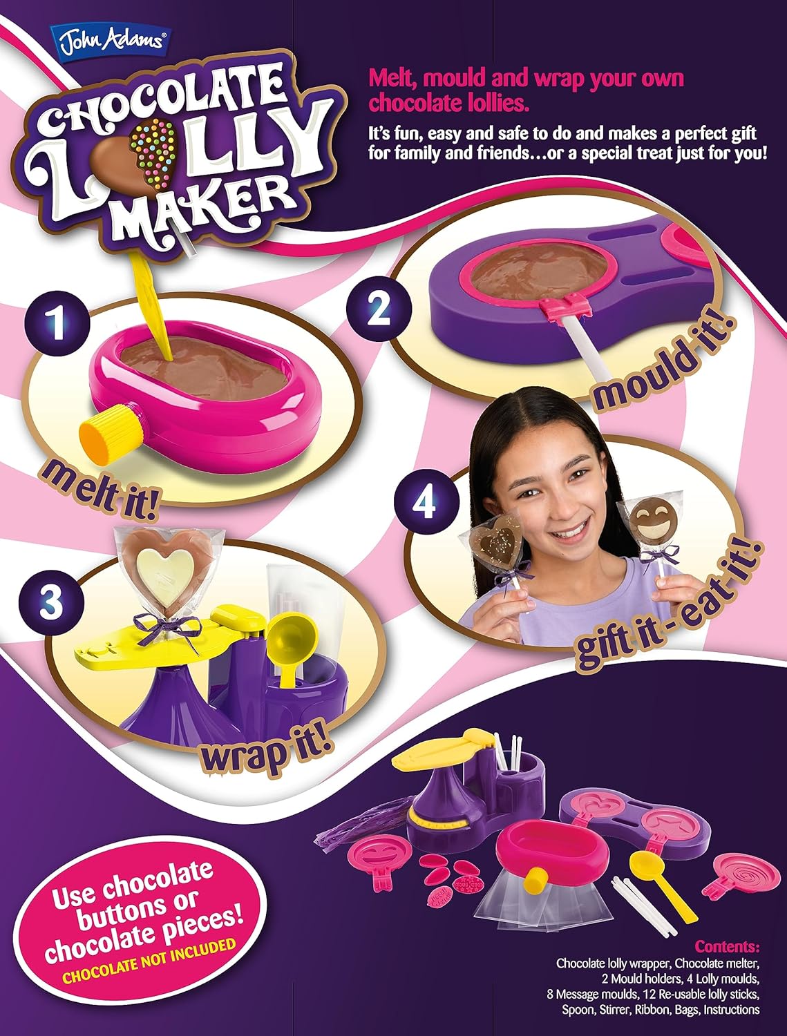 • Melt, mould and wrap chocolate lollies
