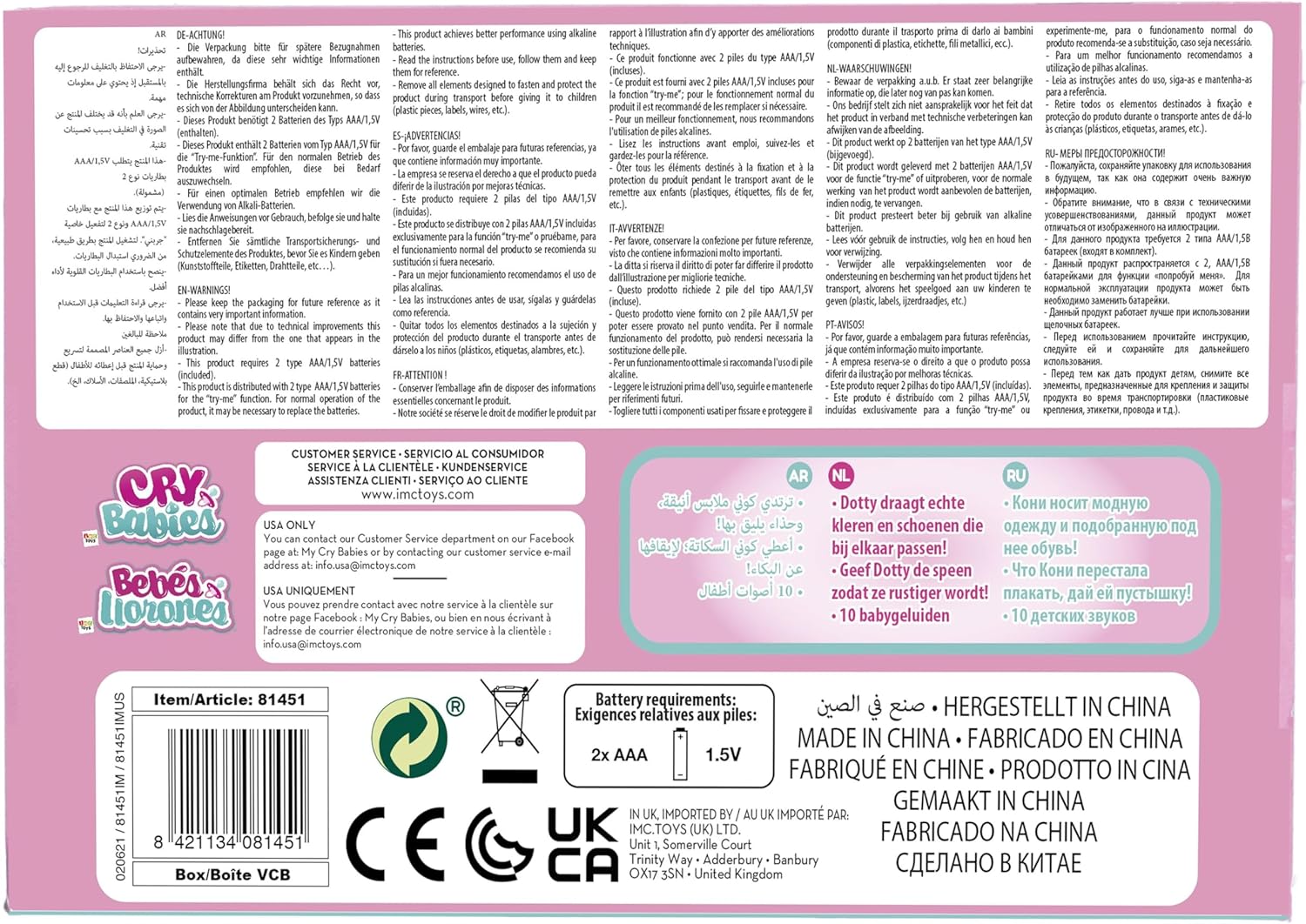 INTERACTIVE DOLL: This is Dotty, a cute Cry Babies Dressy doll with lovely big crystal eyes and shiny colored hair REAL TEARS & BABY SOUNDS: she will start crying like a real baby with real...