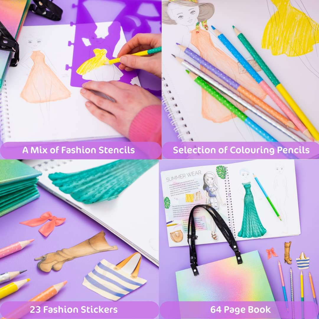 or super-cute swimsuit! With 64-pages filled with loads of information and ideas about the fashion world with its spring/summer and autumn winter collections, plus model figures to sketch, the Pop Fashion: Portfolio Designer contains a bonus page of stylish fashion and accessory stickers plus a handy stencil design for many hours of fashion fun!
