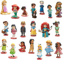 20 piece set Includes: Lilo, Merida, Moana, Mulan, Pocahontas, Rapunzel, Snow White, Kristoff, Alice in Wonderland, Ariel, Aurora, Belle, Anna, Cinderella, Elena of Avalor, Elsa, Princess Jasmine, Tinker Bell, and Tiana Fully sculpted character figurines Characters...