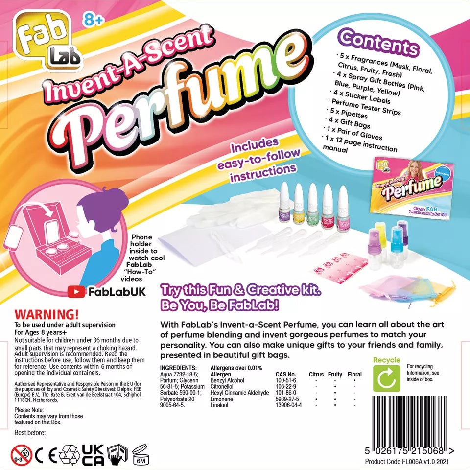 Learn all about the art of perfume blending and invent gorgeous perfumes to match your personality. FabLab’s Invent-a-Scent Perfume Kit shows you how to mix top, middle and base fragrance notes just like a professional perfumer. Invent a scent to match your style or make great smelling and unique scents for friends and family. Follow the colour instruction booklet to see how it's done!
