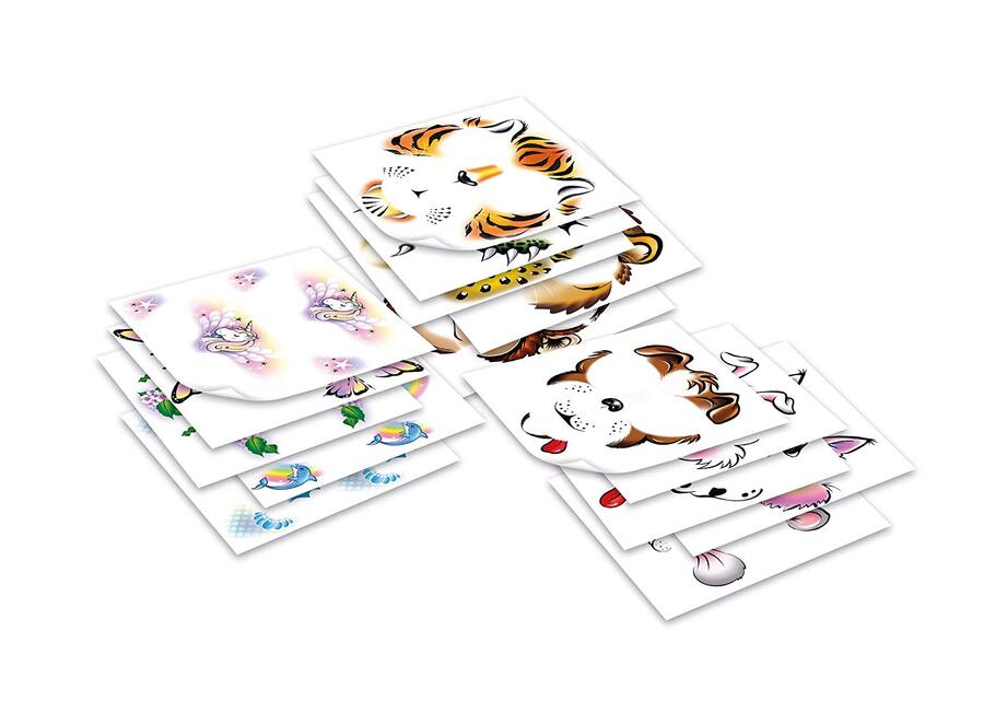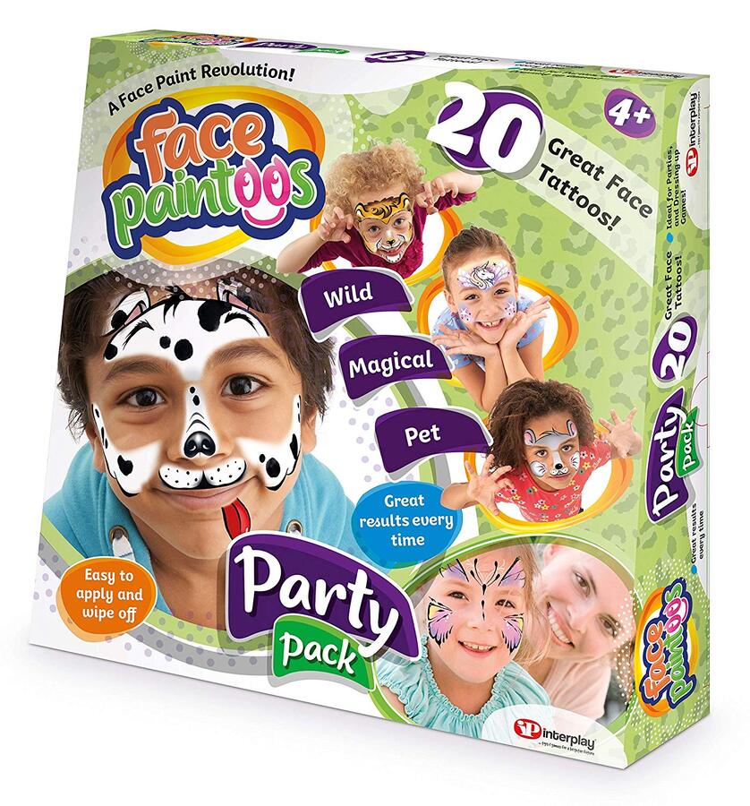 Face paint application has never been so fun and simple with the Face Paintoos Party Pack! Face Paintoos are temporary face paint tattoos that are quick and effortless to apply. Face Paintoos Party Pack comes with an assortment of 20 awesome tattoos that include wild animals, magical creatures and the most adorable pets! Perfect for parties, playdates or for everyday fun!