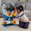 Epic Batman adventures await with this 2-foot-tall (60 cm) Justice League headquarters playset with lights, sounds and a transforming Batwing Turn the Power Pads to lift & transform the Batwing, reveal a hidden projectile launcher,...