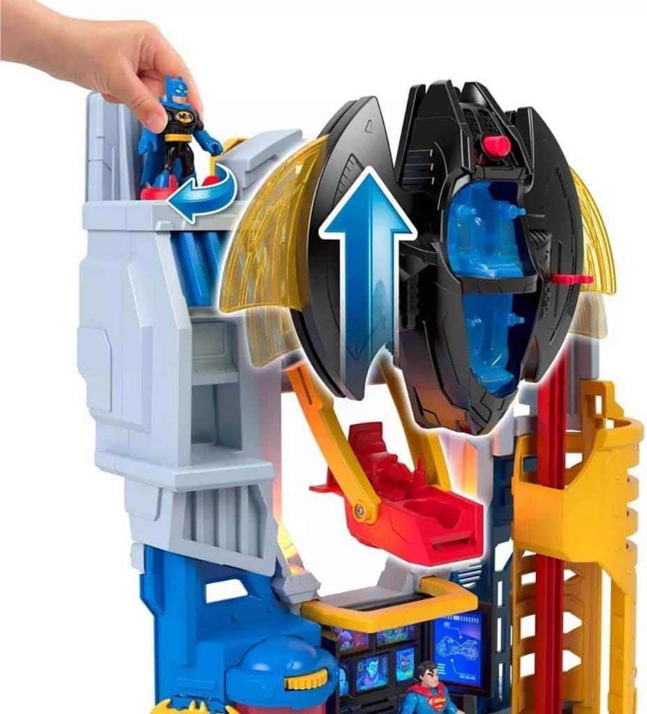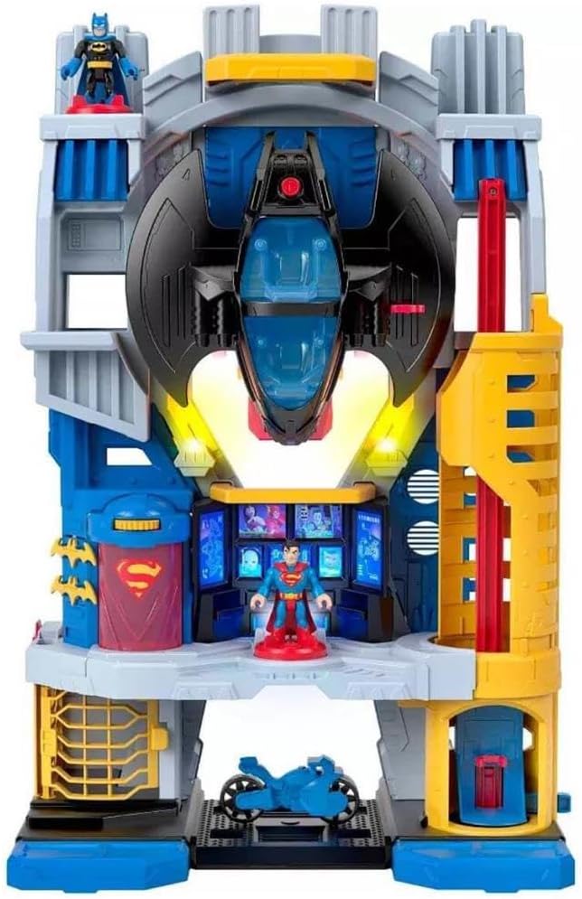 • Epic Batman adventures await with this 2-foot-tall (60 cm) Justice League headquarters playset with lights, sounds and a transforming Batwing