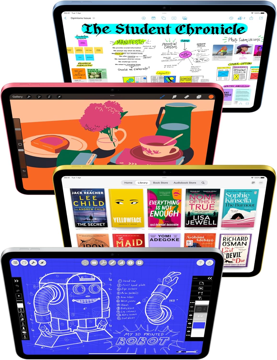 • PERFORMANCE AND STORAGE — The superfast A16 chip delivers a boost in performance for your favourite activities. And with all-day battery life, iPad is perfect for playing immersive games and editing photos and videos.* Storage starts at 128GB and goes up to 512GB.*