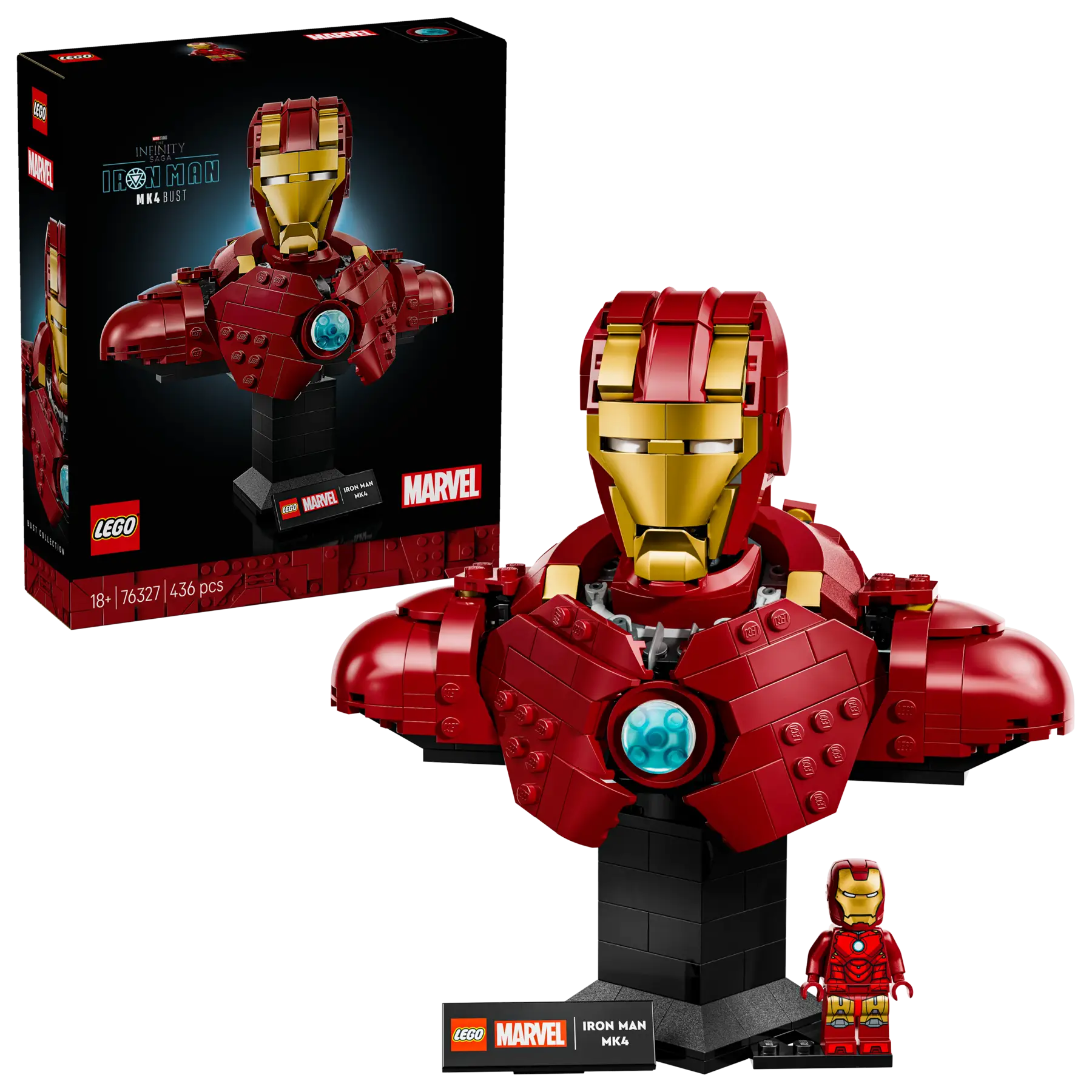 LEGO® ǀ Marvel Iron Man MK4 Bust (76327) is a celebration of one of the most popular characters in the Marvel Cinematic Universe. With 436 pieces and a sturdy base, this building set project yields an impressive collectible display piece that will delight experienced model-makers, Marvel fans and adult Super Hero enthusiasts.