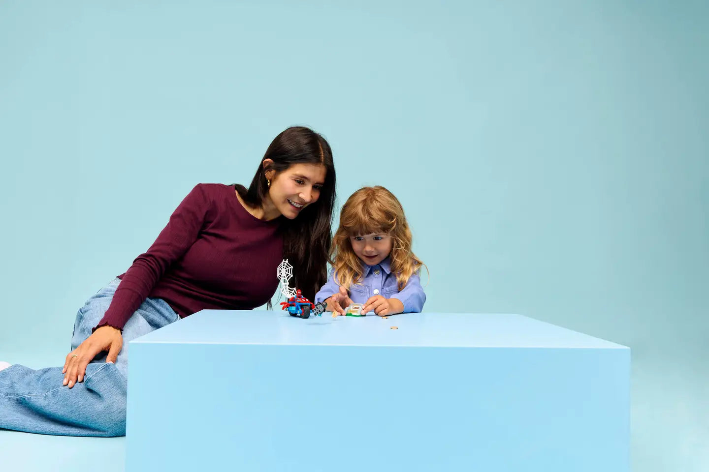 • MARVEL ACTION ON WHEELS – Kids help Spidey retrieve a stolen blue gem, dodge flying pizzas launched from Rhino’s pizza oven shooter, and capture Rhino in a giant spiderweb trap