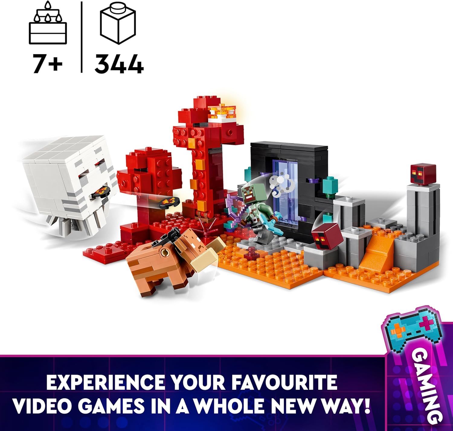 LEGO Minecraft Nether portal – This Minecraft toy for kids, boys and girls aged 8+ has buildable action scenes with iconic Minecraft characters Minecraft figures – Includes an Orc Warrior, a Minecraft ghast that shoots...