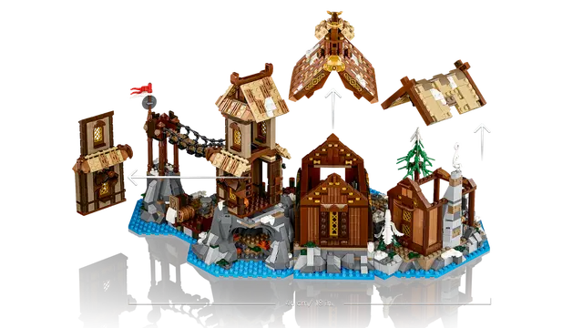 • Brick-built centrepiece – The buildable Viking Village model comprises 3 connectible sections and measures over 24 cm (9.5 in.) high, 46 cm (18 in.) wide and 26 cm (10 in.) deep