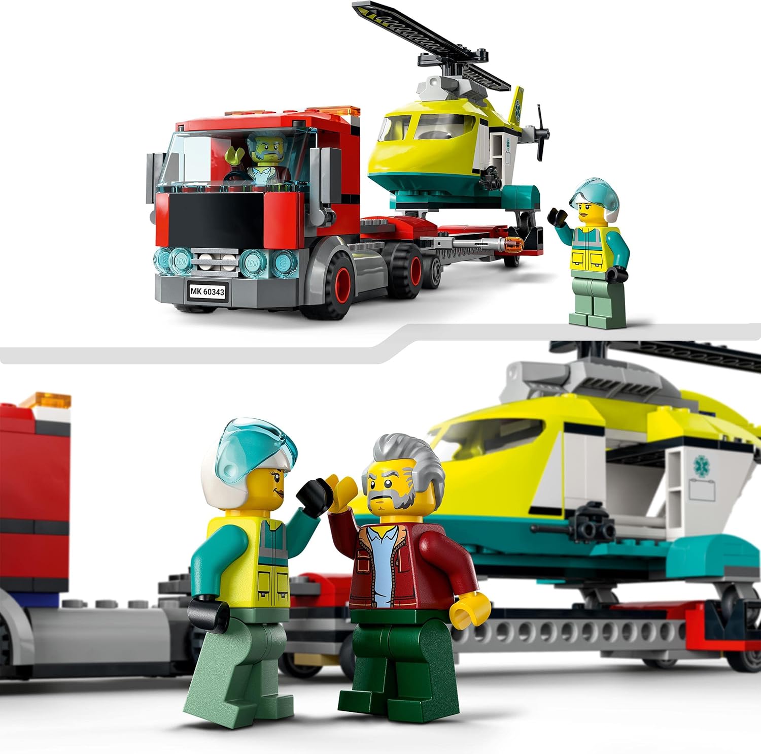 Features a transporter truck toy, a toy rescue helicopter, plus LEGO driver and pilot minifigures for hours of imaginative play The rescue helicopter toy for kids 5 + years old has spinnable rotors and a...