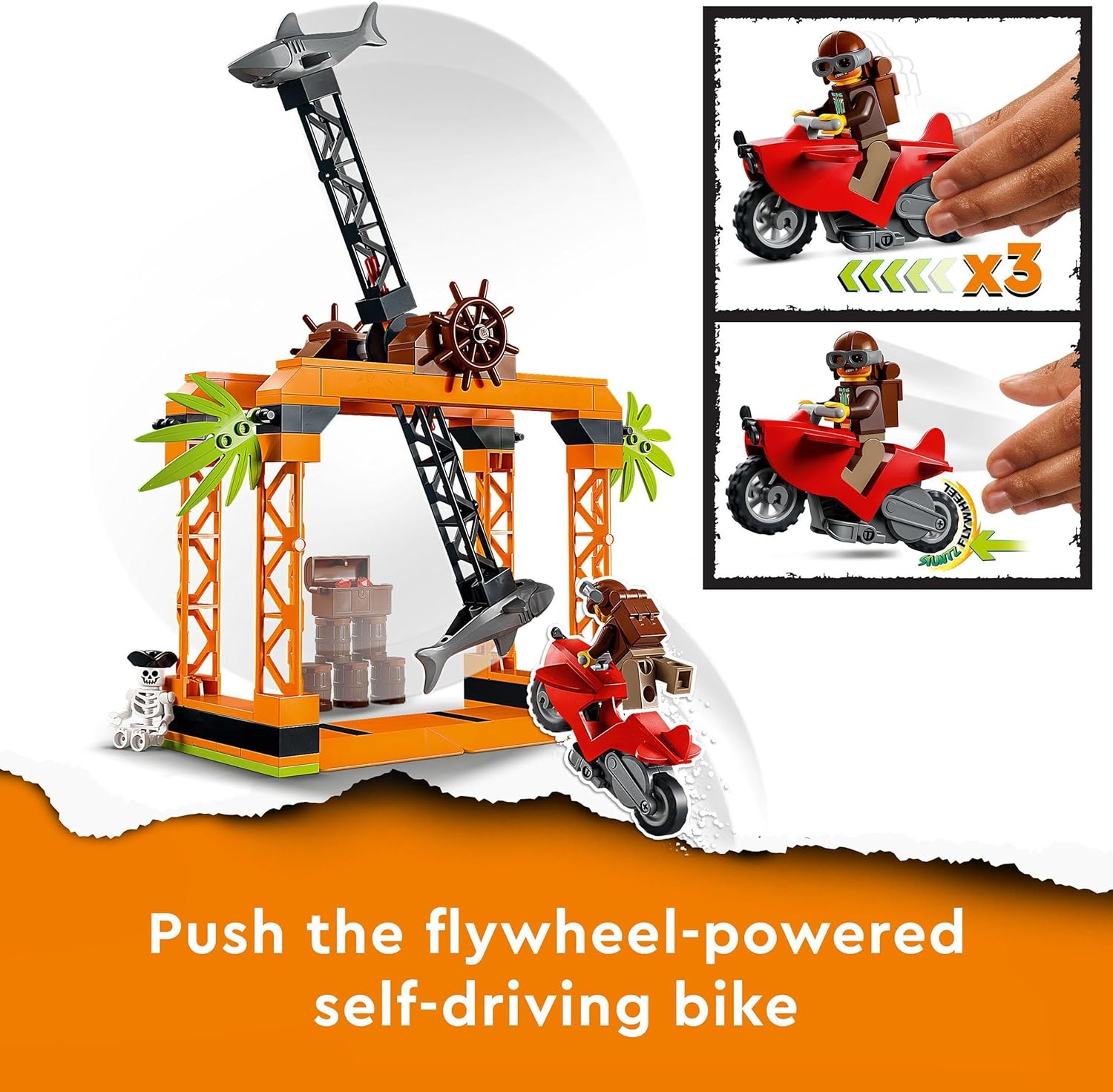 LEGO City Stuntz The Shark Attack Stunt Challenge toy for 5 year old boys and girls featuring a Flywheel-Powered Stunt Bike toy and 2 Minifigures Includes a flywheel toy motorbike and all kids need to...