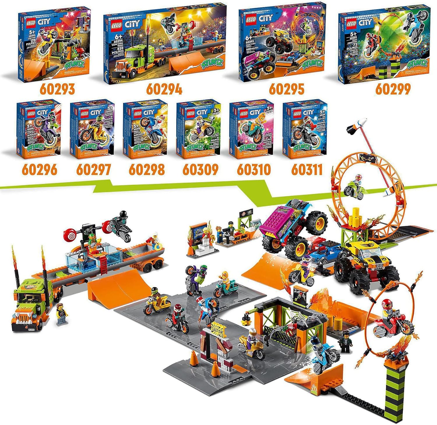 Kids can soar from ramps for record-breaking jumps with this LEGO stunt show set featuring flywheel-powered self driving stunt motorbike toy The toy motorbike is friction motor-based; kids push the stunt motorcycle to activate the...