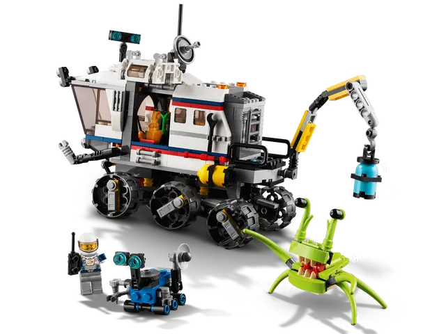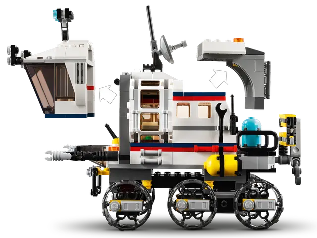 Features an exploration vehicle with robust wheels, working crane and suspension, cockpit, lab/living area, plus a robot with moving arms A realistic, detailed space base with living quarters or super-fast spaceship make it easy for...