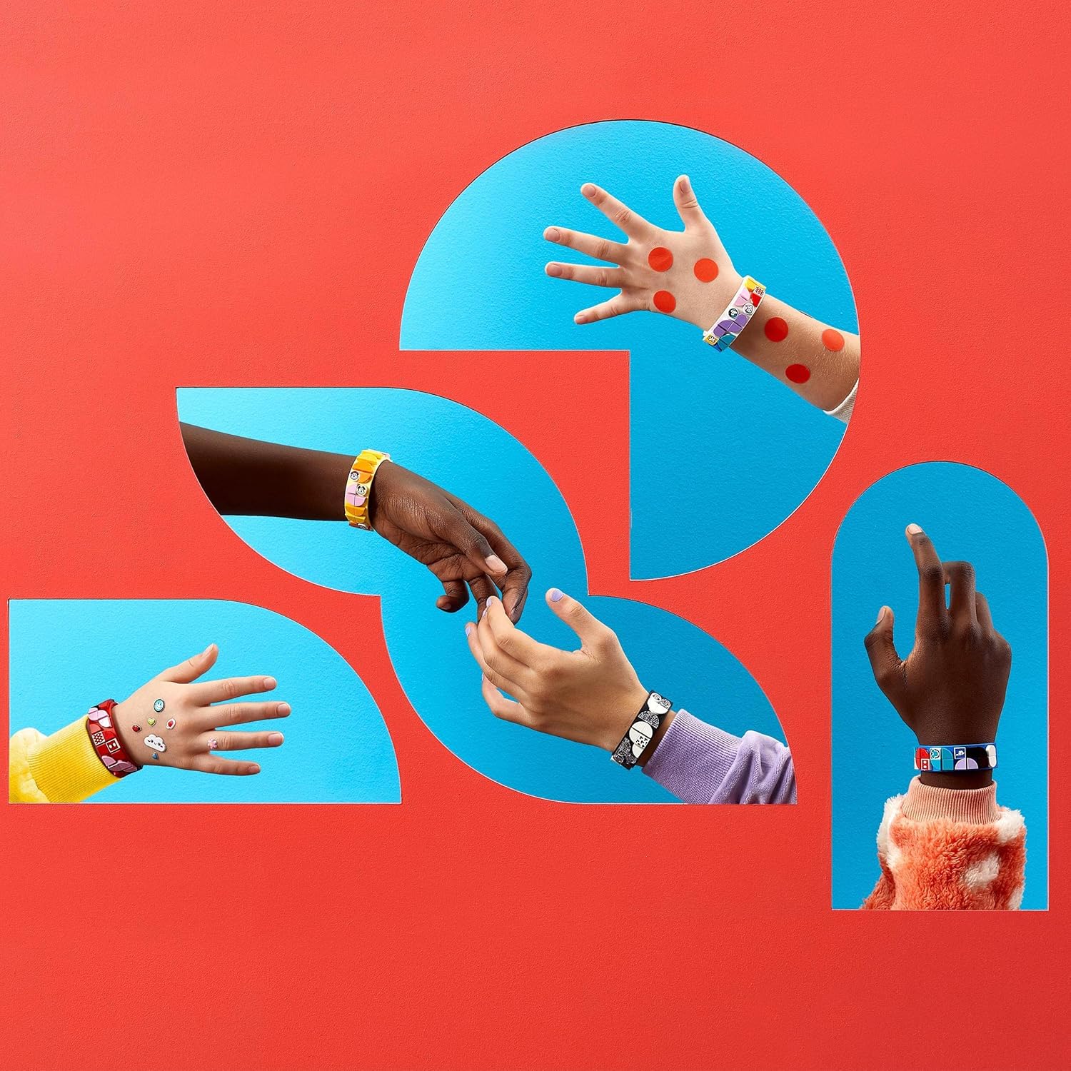 • Kids can lay the colourful LEGO DOTS bracelets out and snap on the Mickey and Friends-decorated tiles to express their mood and creativity